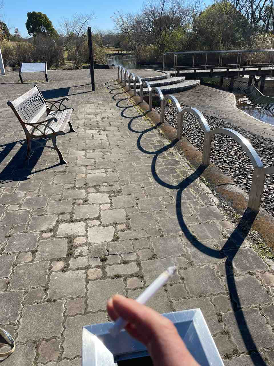 池の前を歩き、