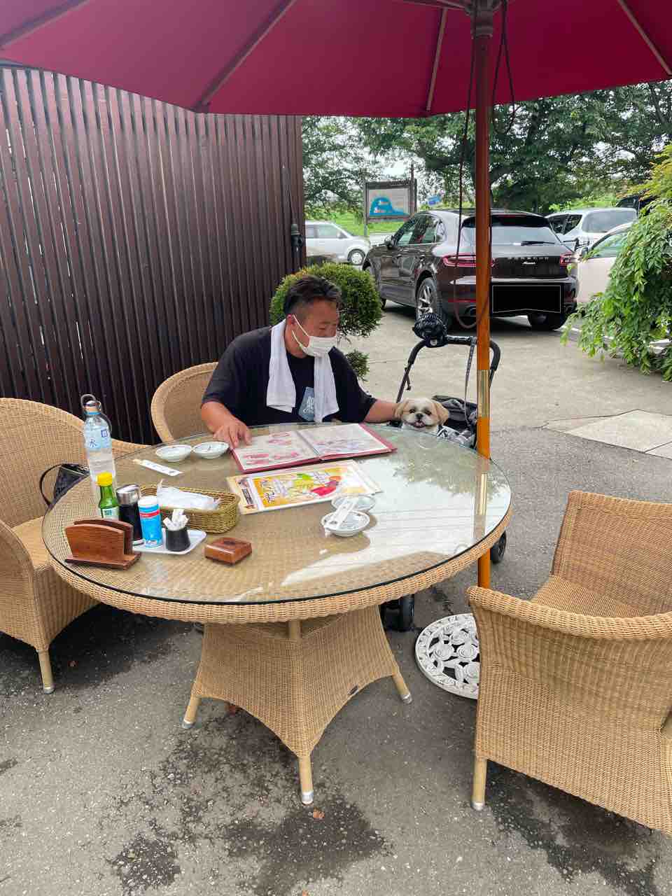 テラス席に。