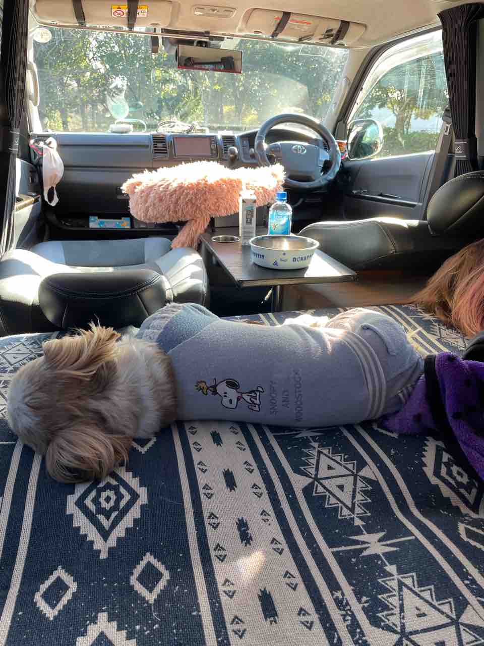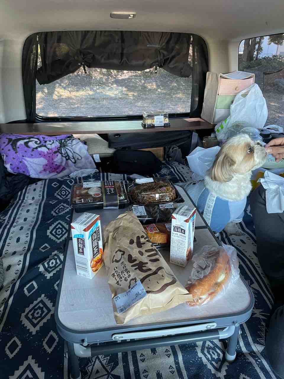 いつもの車中座敷スタイルで、