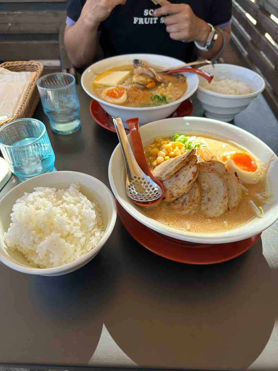 私は、炙りチャーシュー麺と、大ライス。