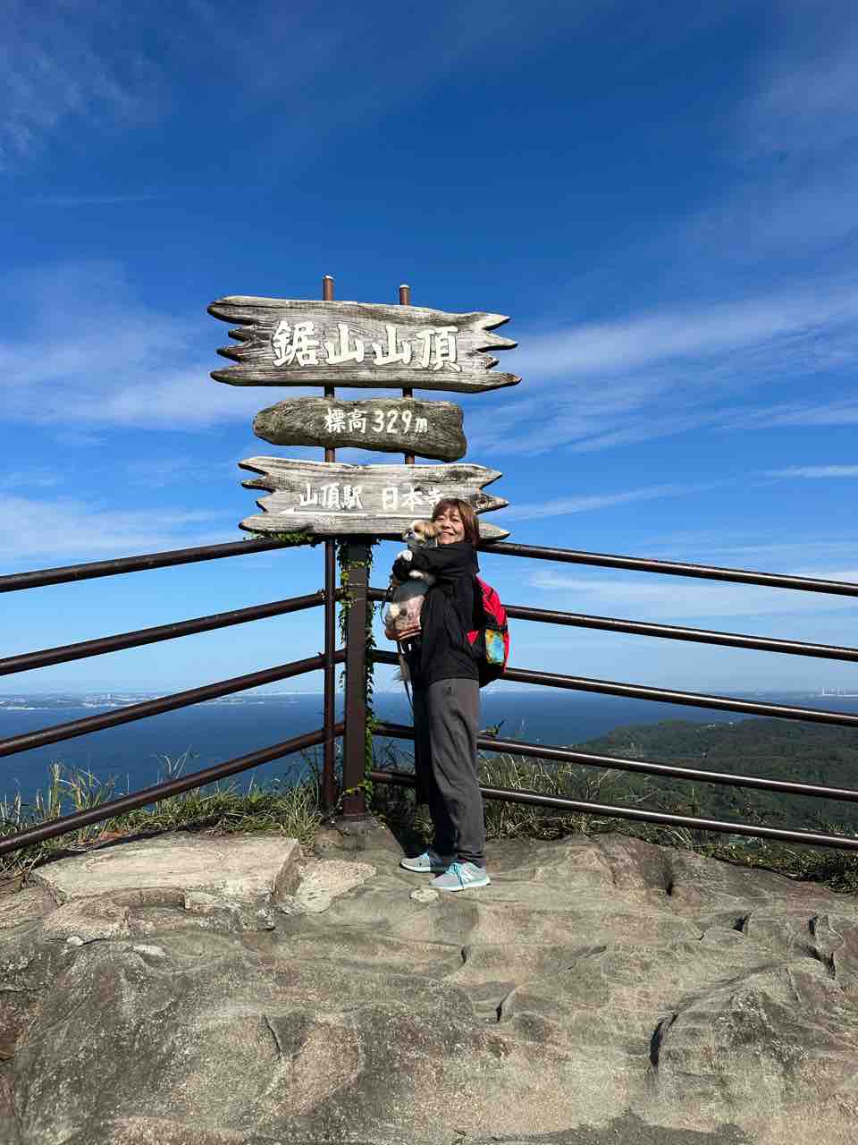 鋸山山頂で、妻とWONDA。*\(^o^)/*