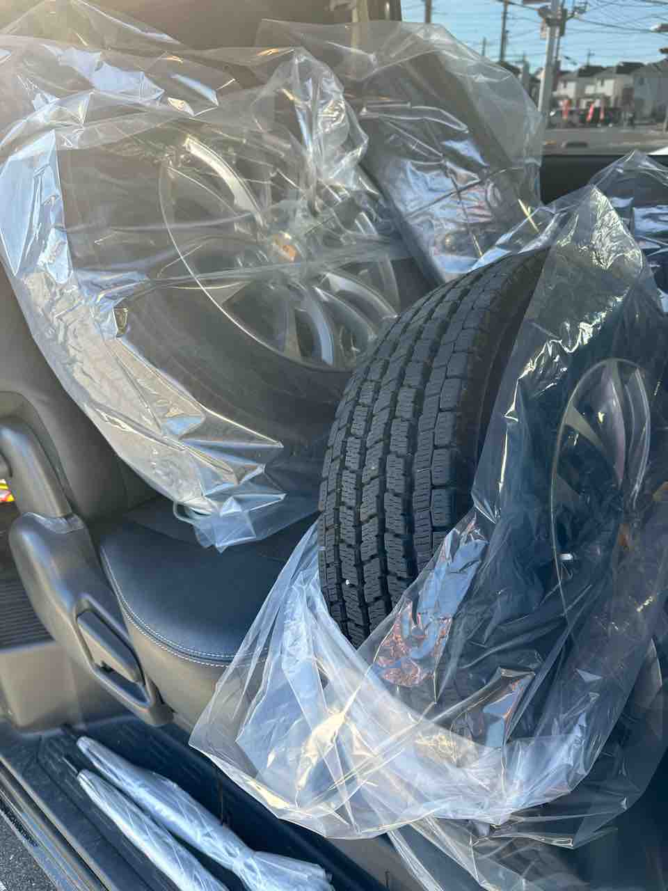 タイヤをスタッドレスに変えてもらいます。