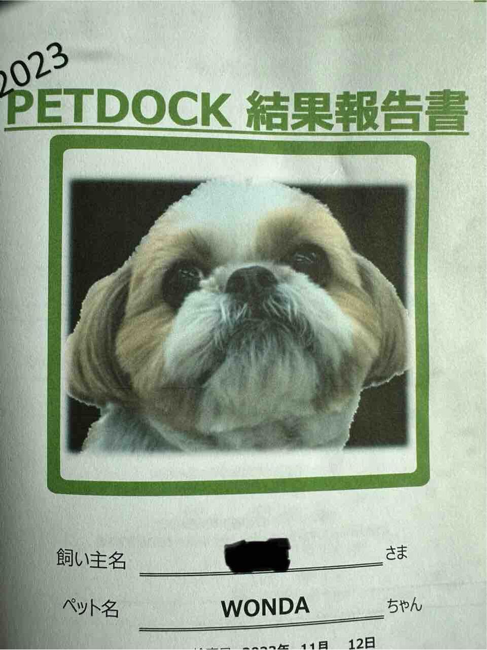 ペットドック(わんちゃんの健康診断)報告書を、