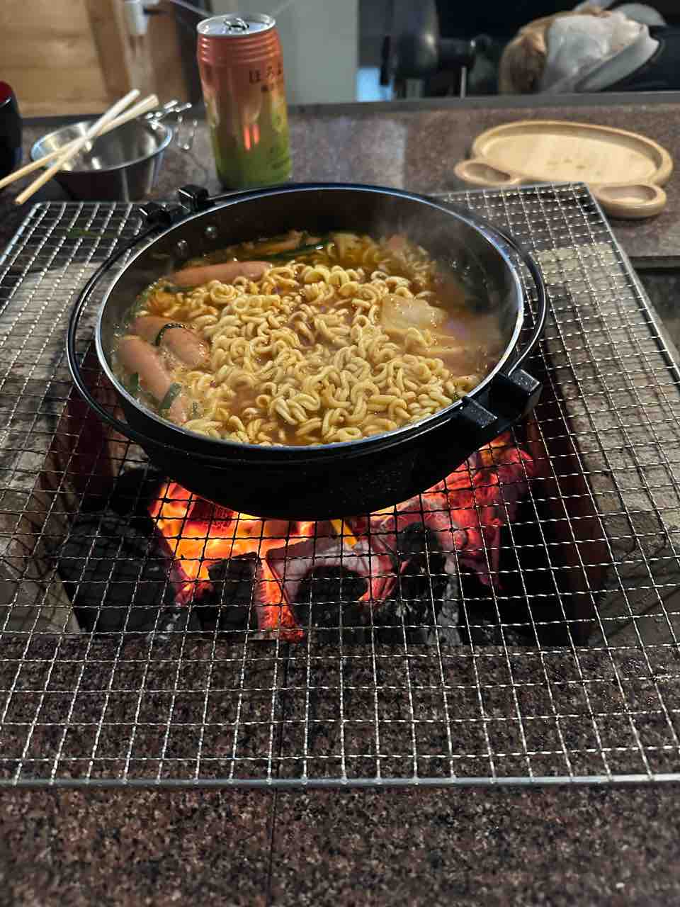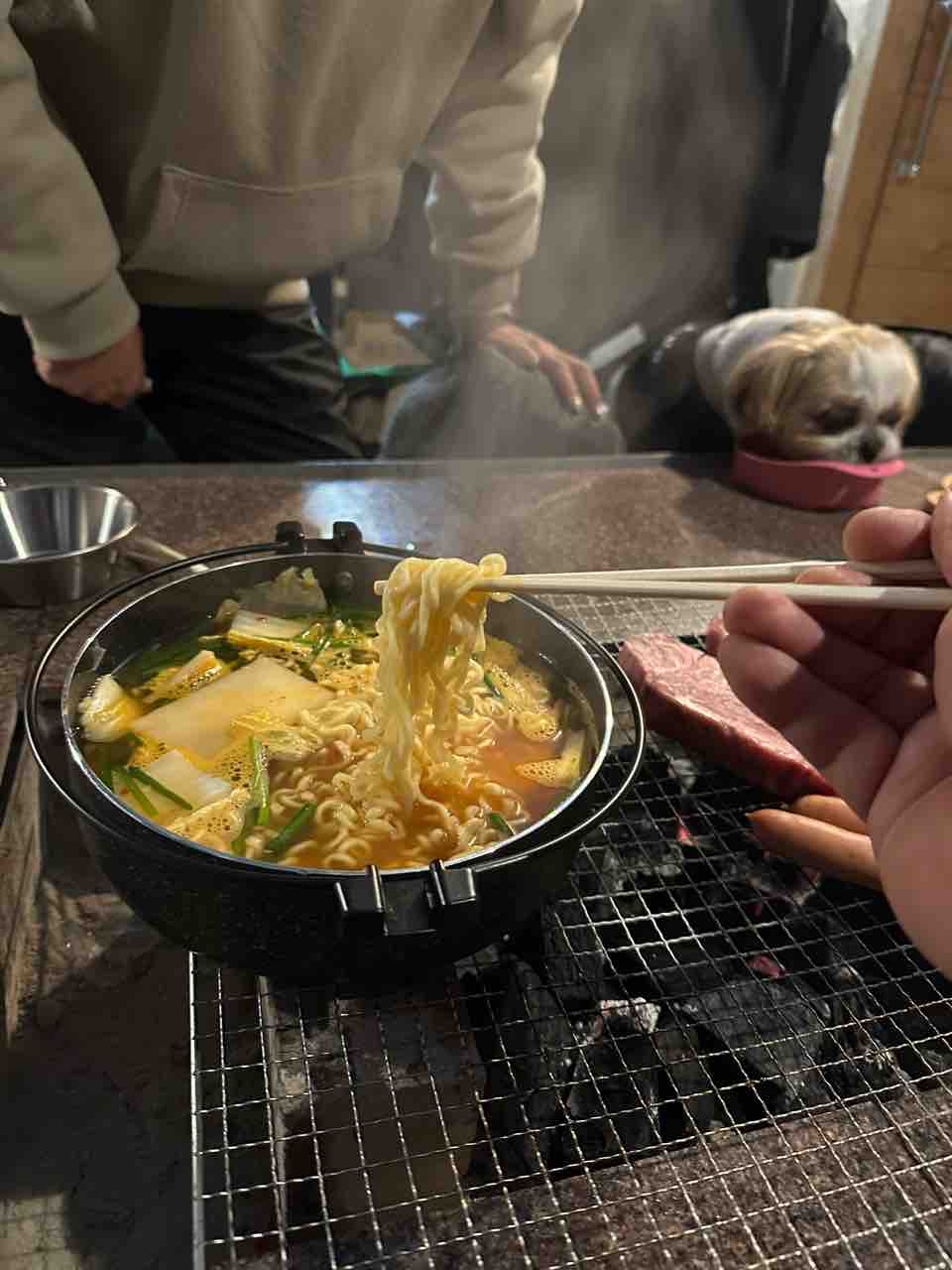 辛ラーメン鍋が出来上がってしまった。^ ^
