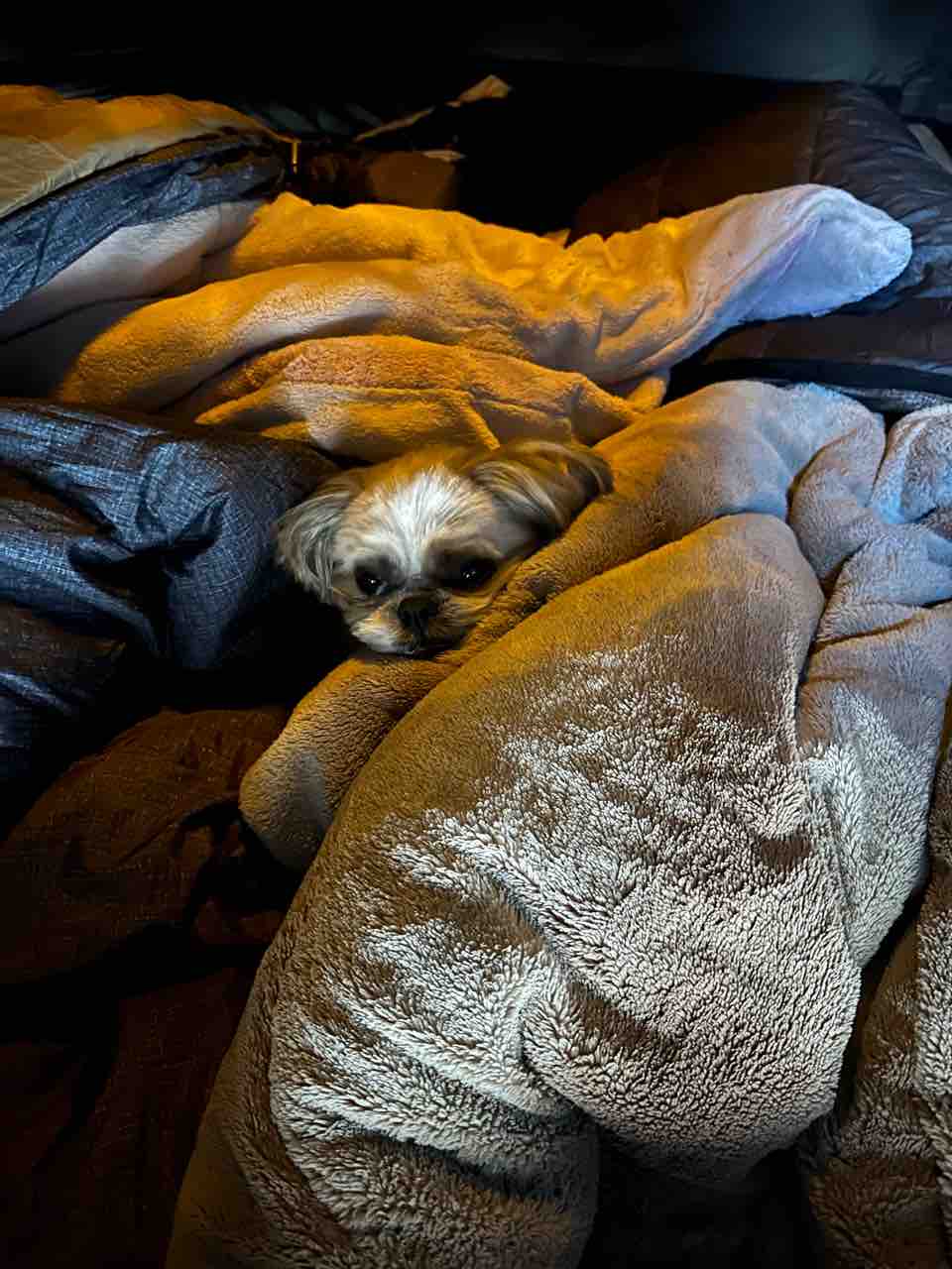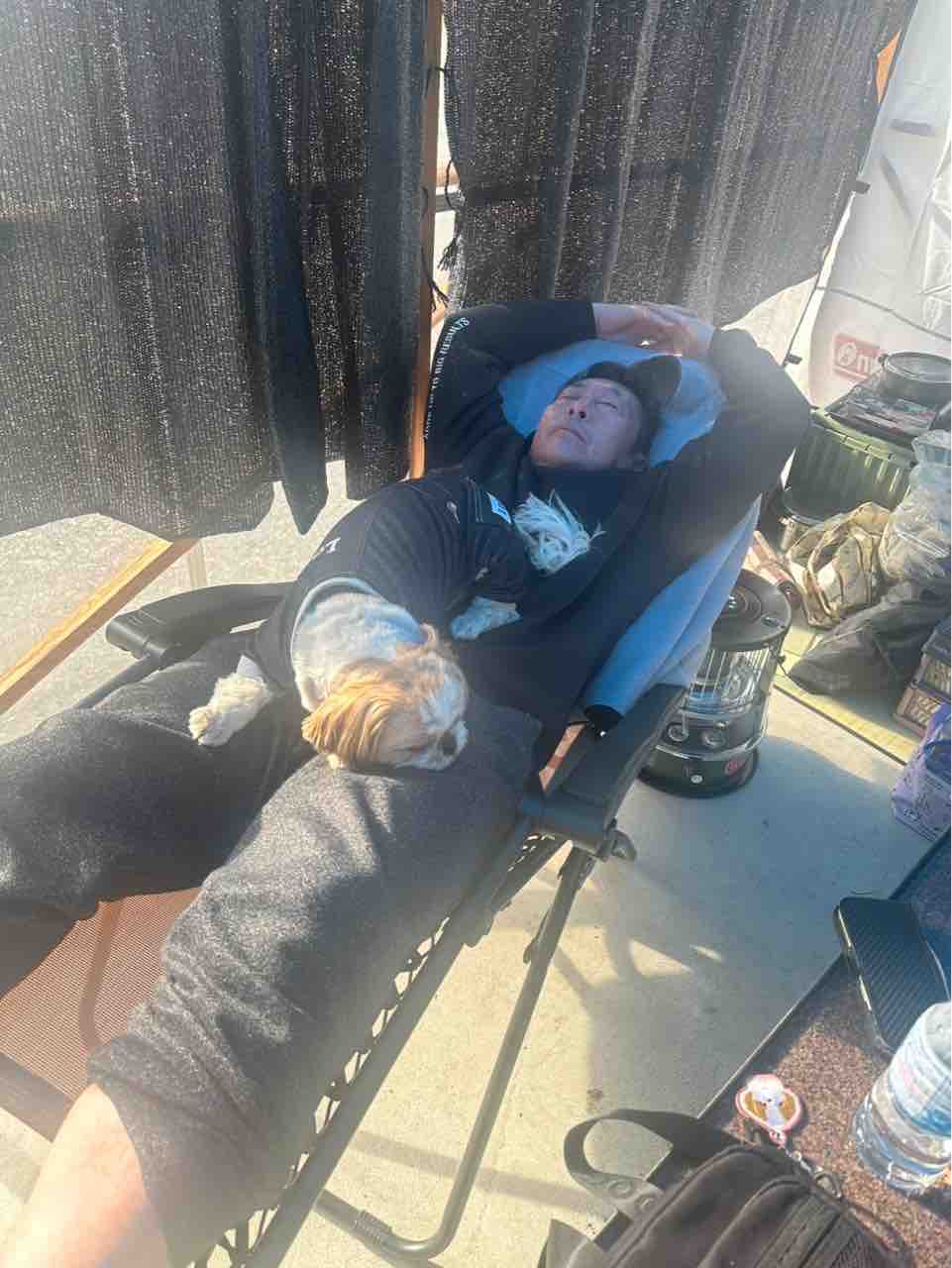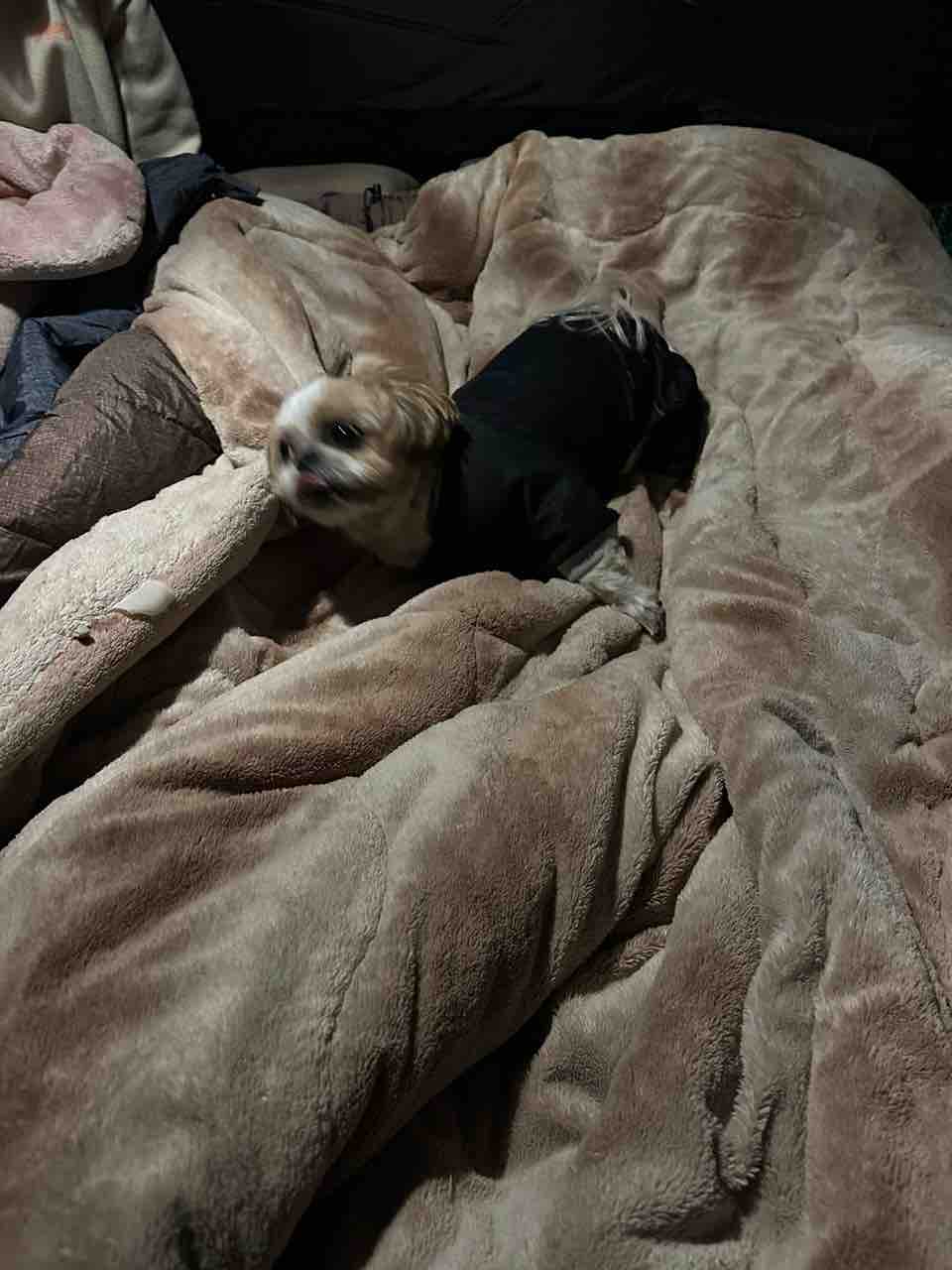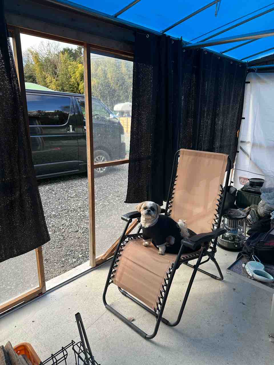 まだ、テントの中で布団にくるまってます。(^-^)