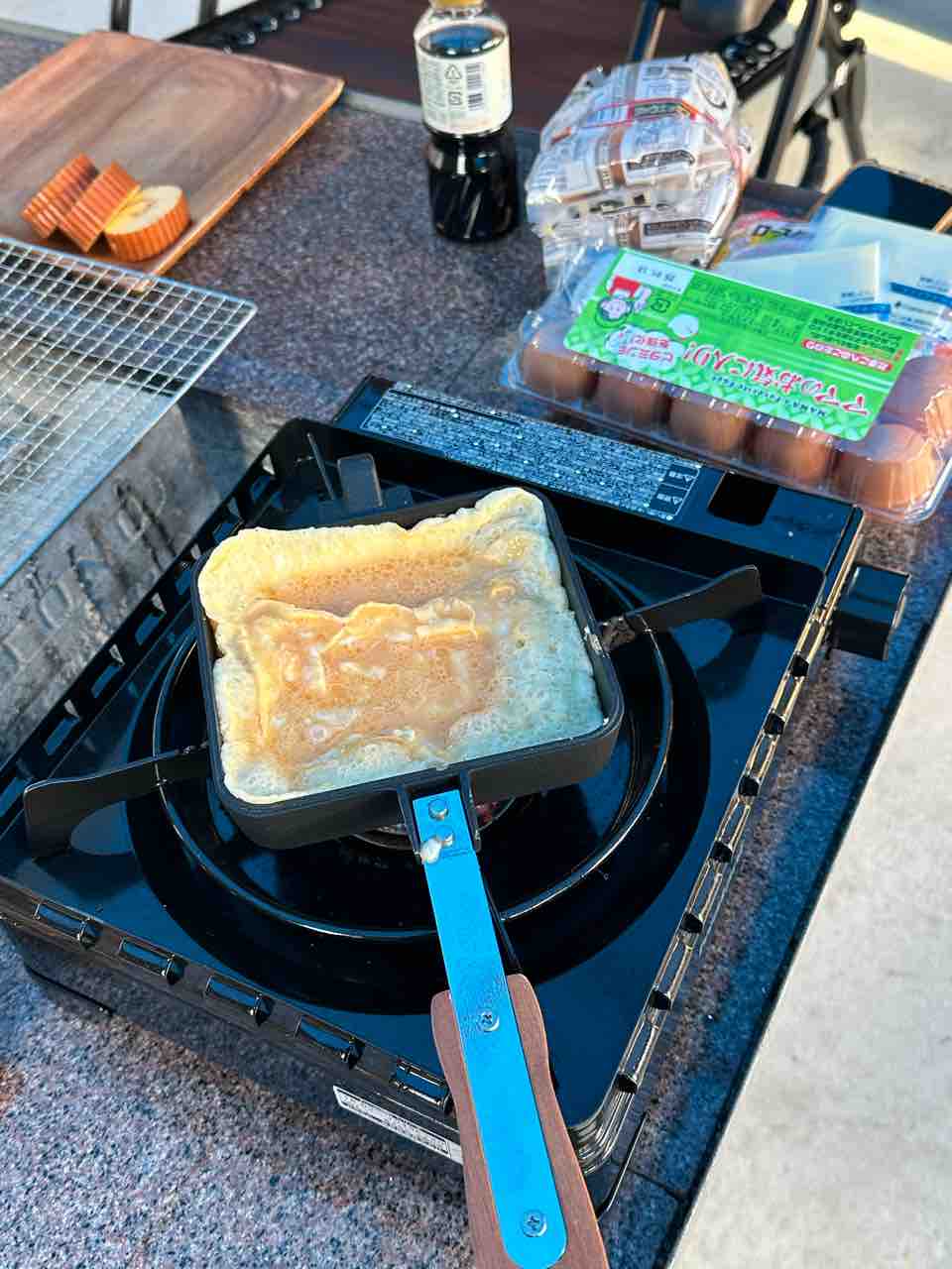 おかずはカセットコンロで作りましょ。(^.^)