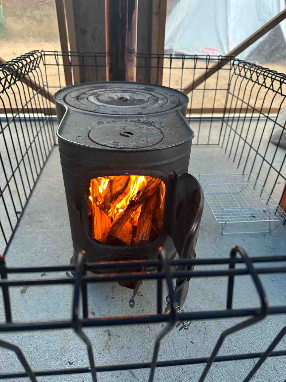 起きてくる前に、小屋を暖めとこうと、