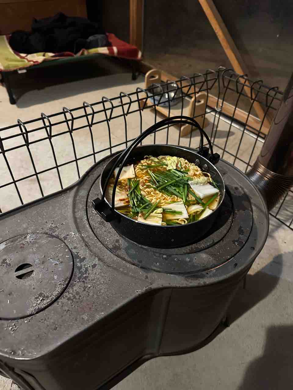 薪ストーブの上で煮込みましょ。