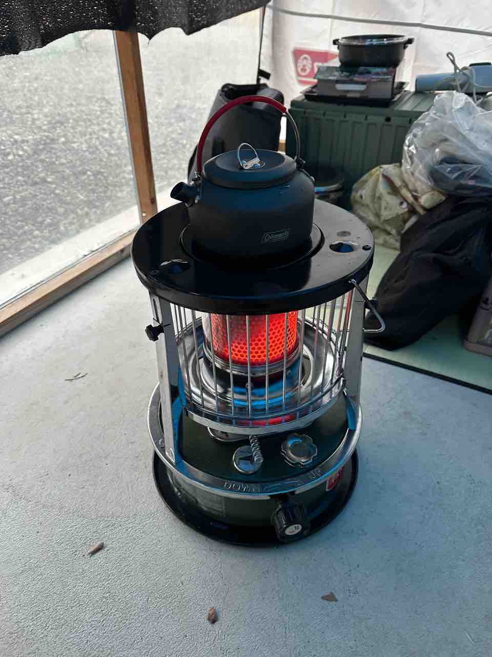 石油ストーブもつけて、