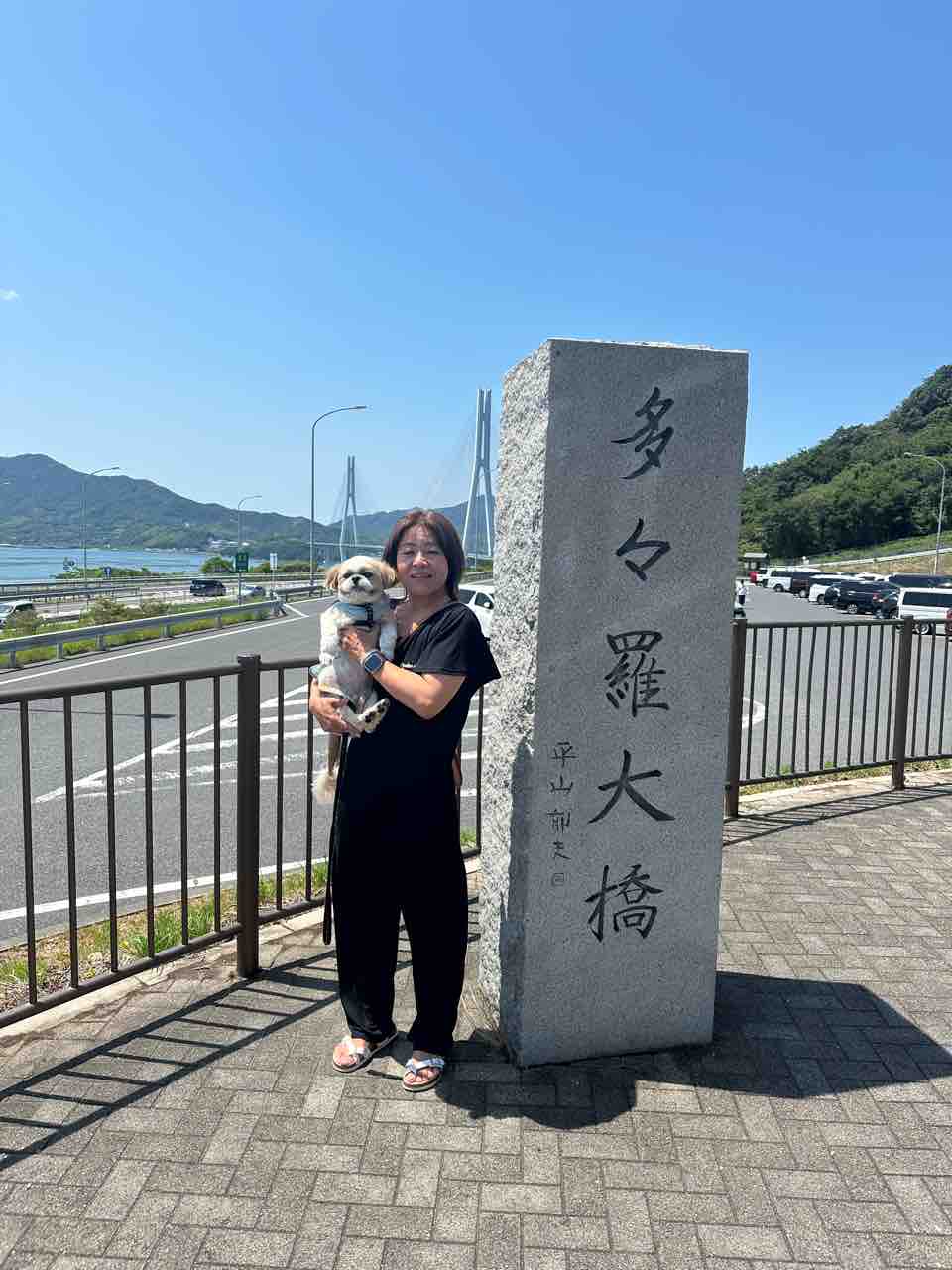 妻の後ろの橋の向こうは、愛媛県。(^-^)
