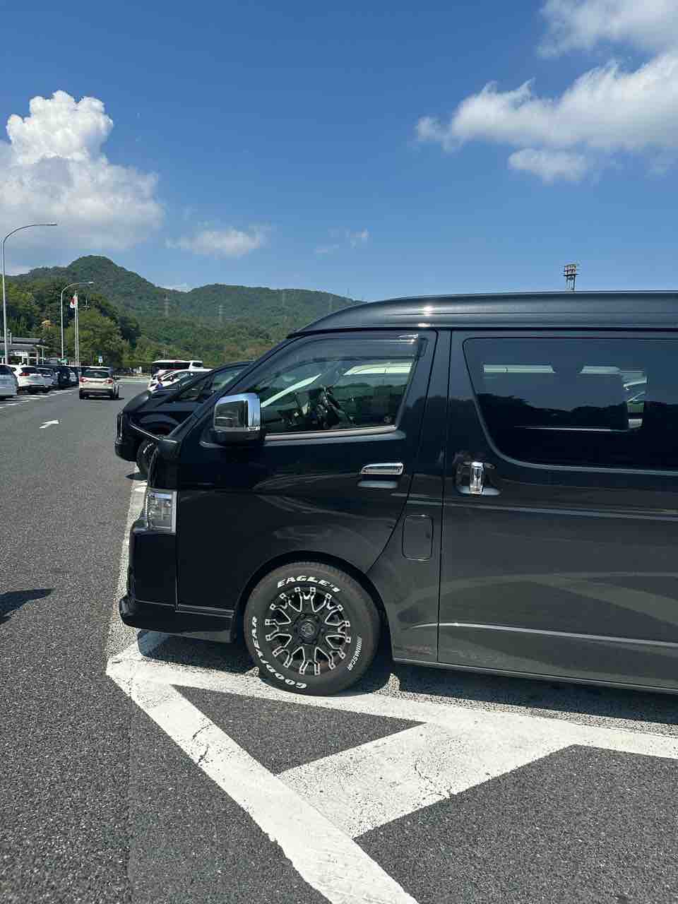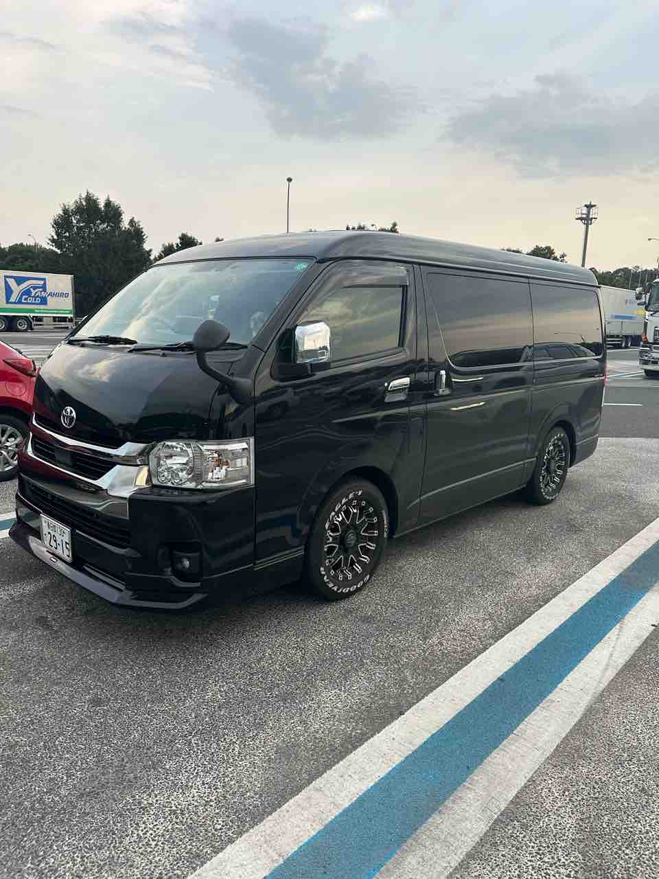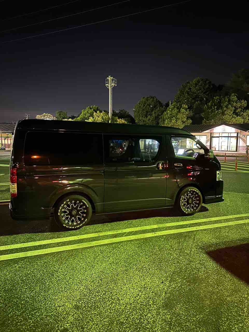 途中、ハイエースに燃料入れて。