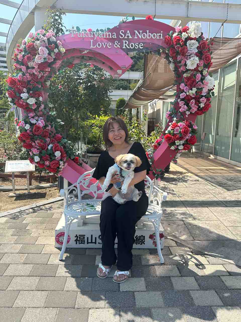ローズマインド福山SAのバラ園の前で、
