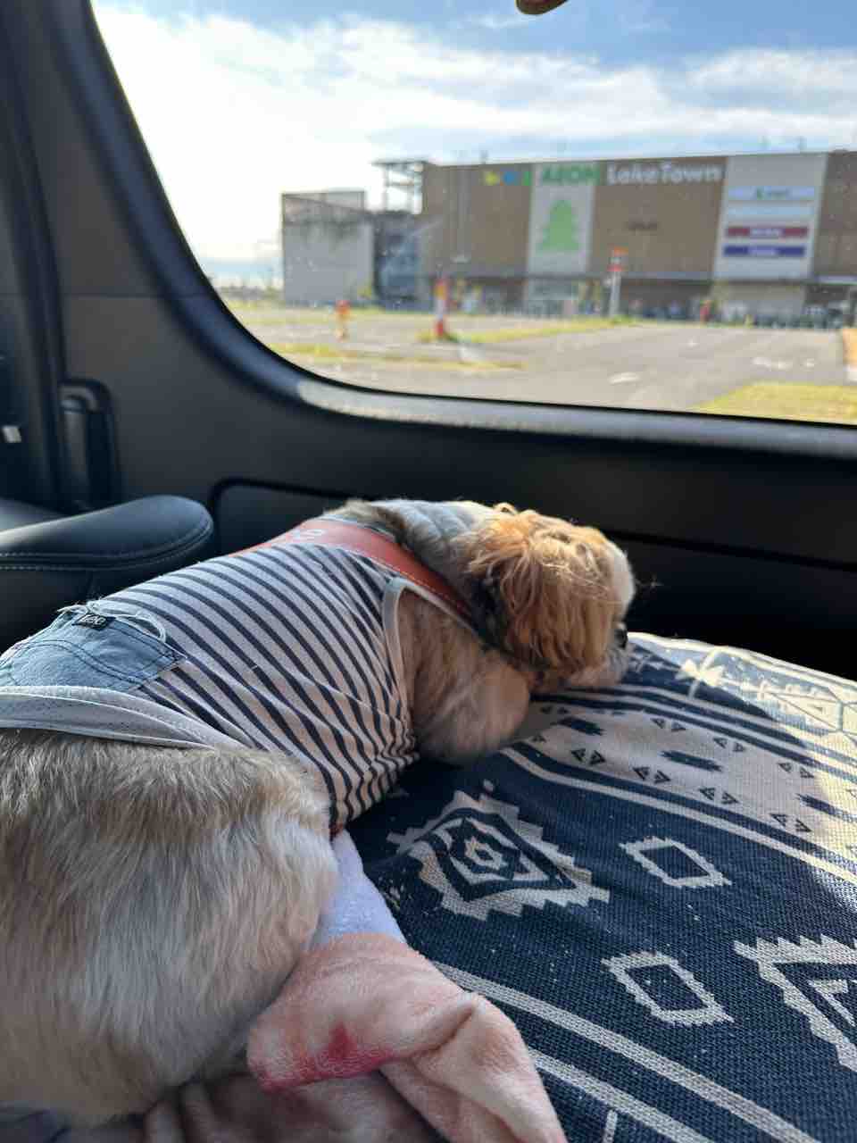 ちょっと、車中で寝ましょ。(_ _).。o○