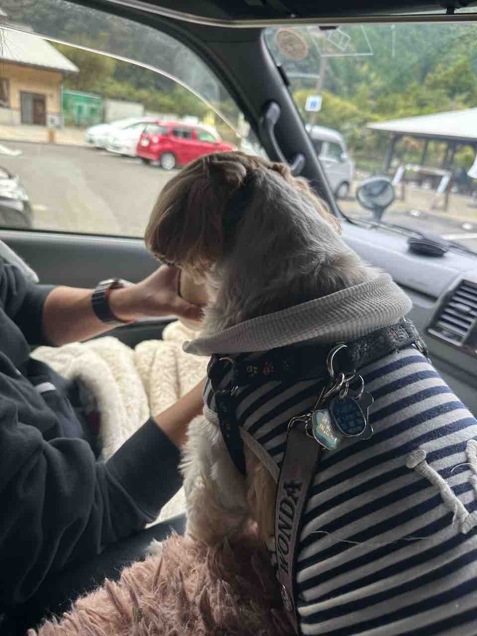 WONDAも車にもどったら、朝ごはん。\(^o^)/
