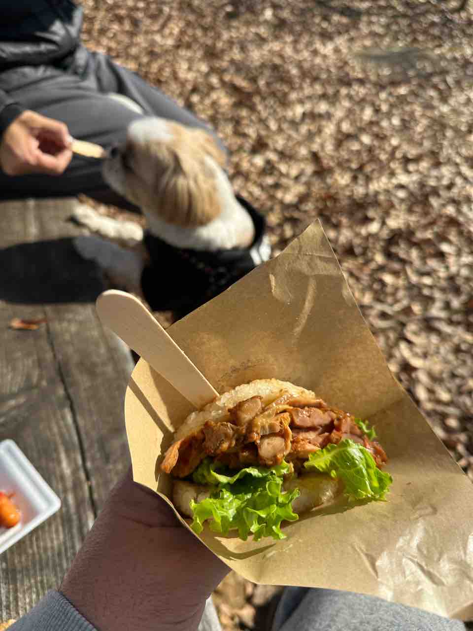 キッチンカーで、買って、朝飯。*\(^o^)/*