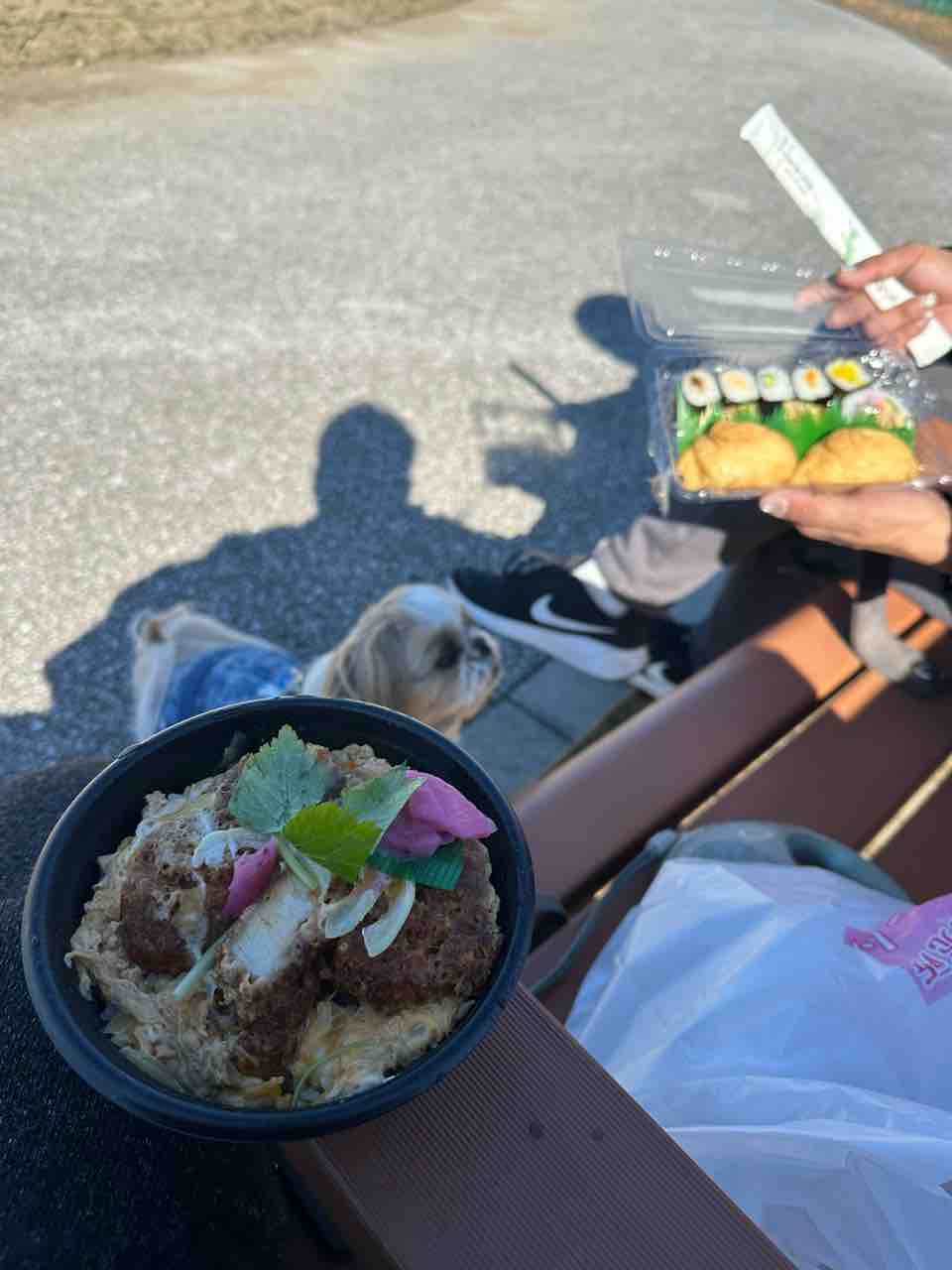 直売所で、お弁当買って、直売所の入口横で、