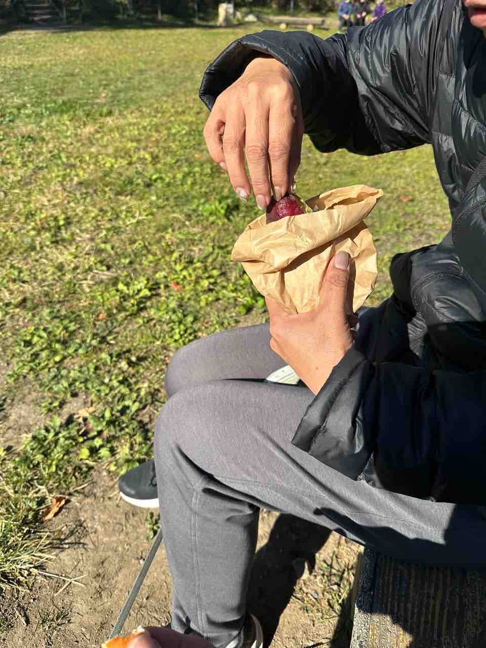 アツアツの、焼き芋、食べましょ。