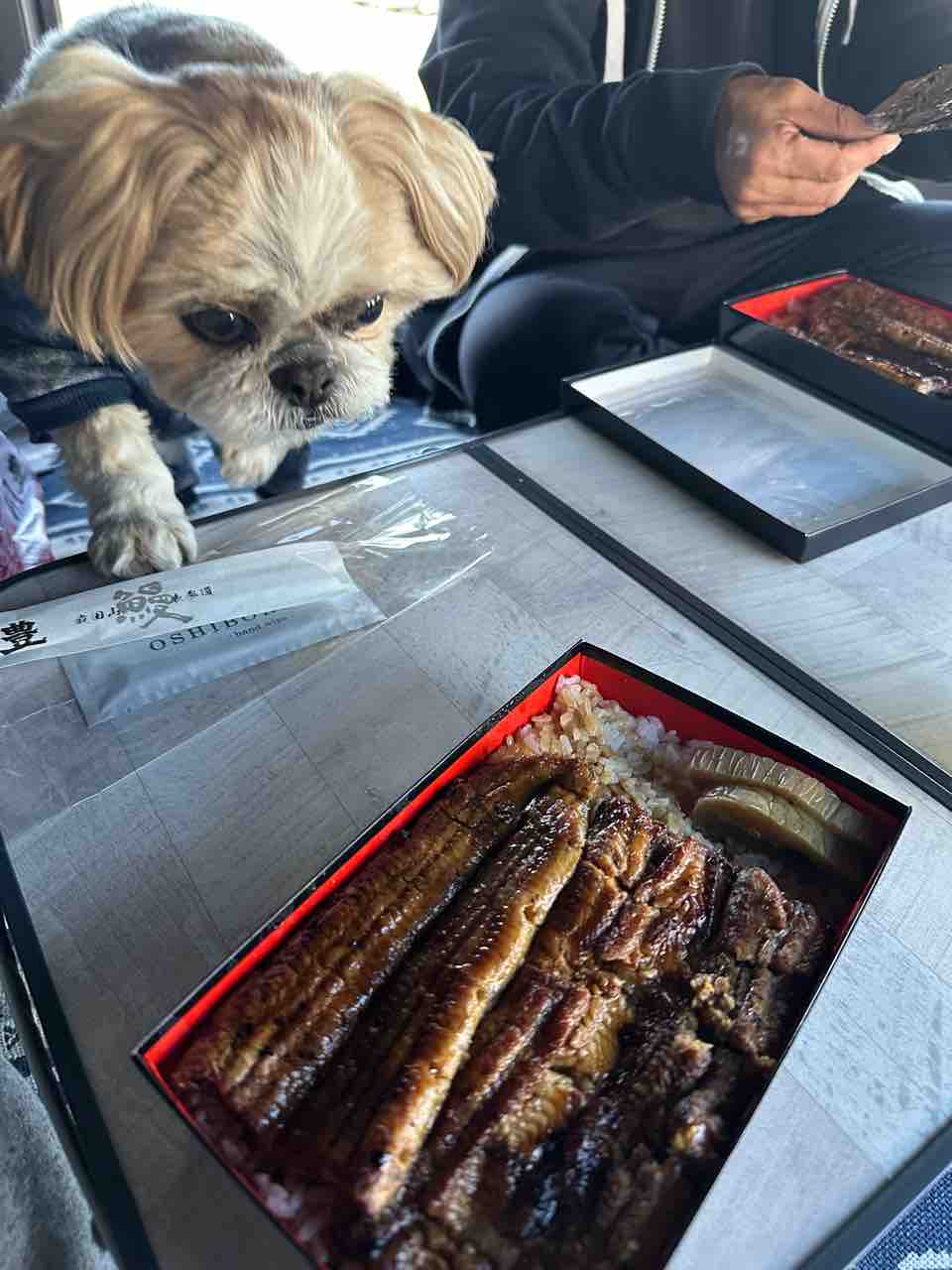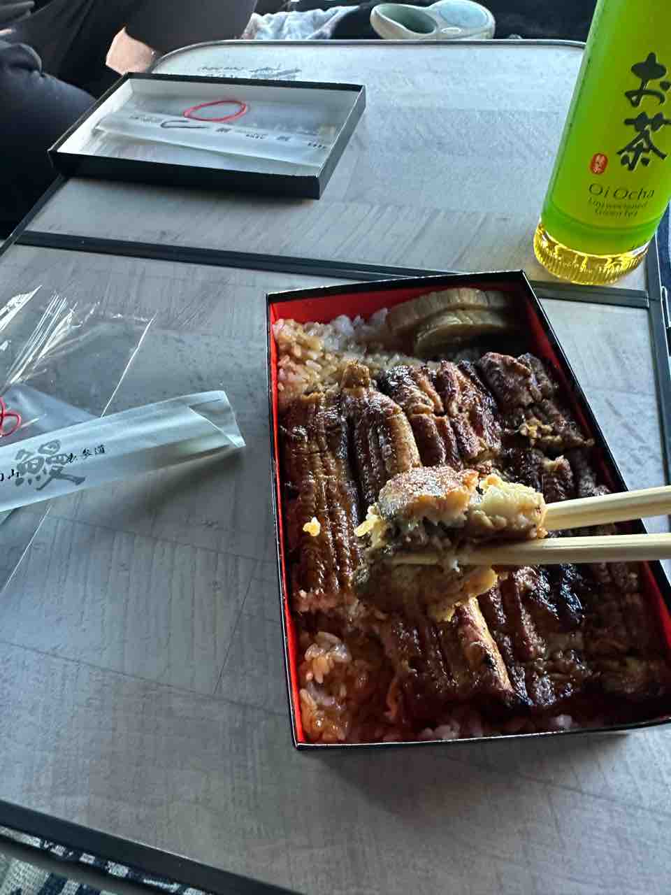 上鰻弁当で、車中昼飯にします。\(^o^)/