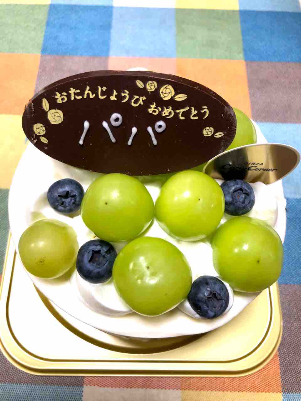 シャインマスカットのケーキが少し崩れましたが、いただきます。^_^
