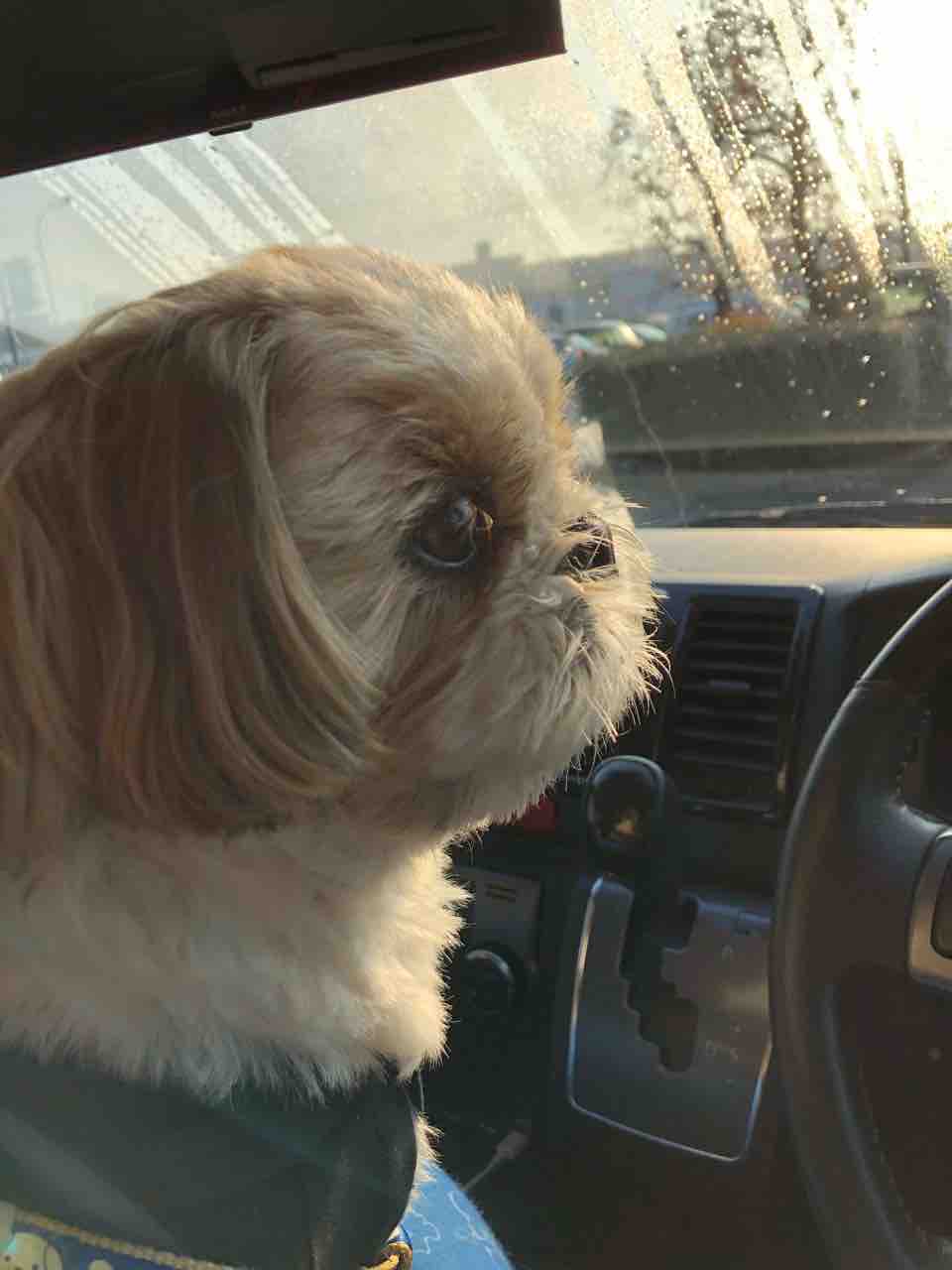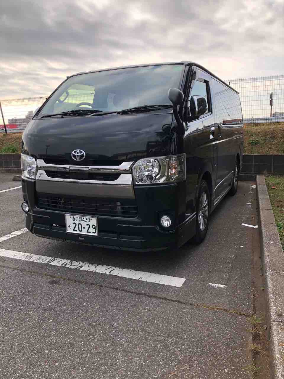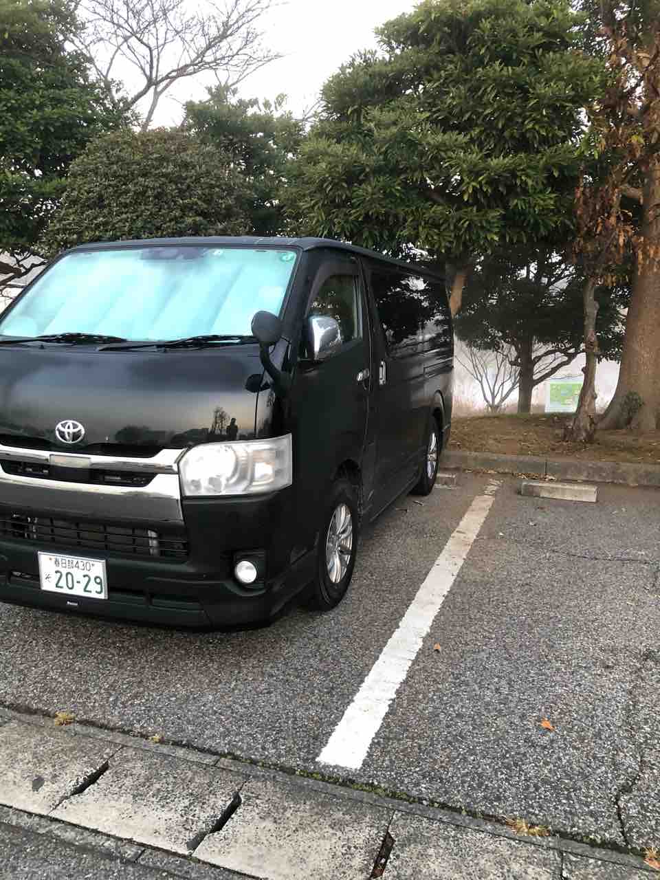 駐車場に車を止めて。