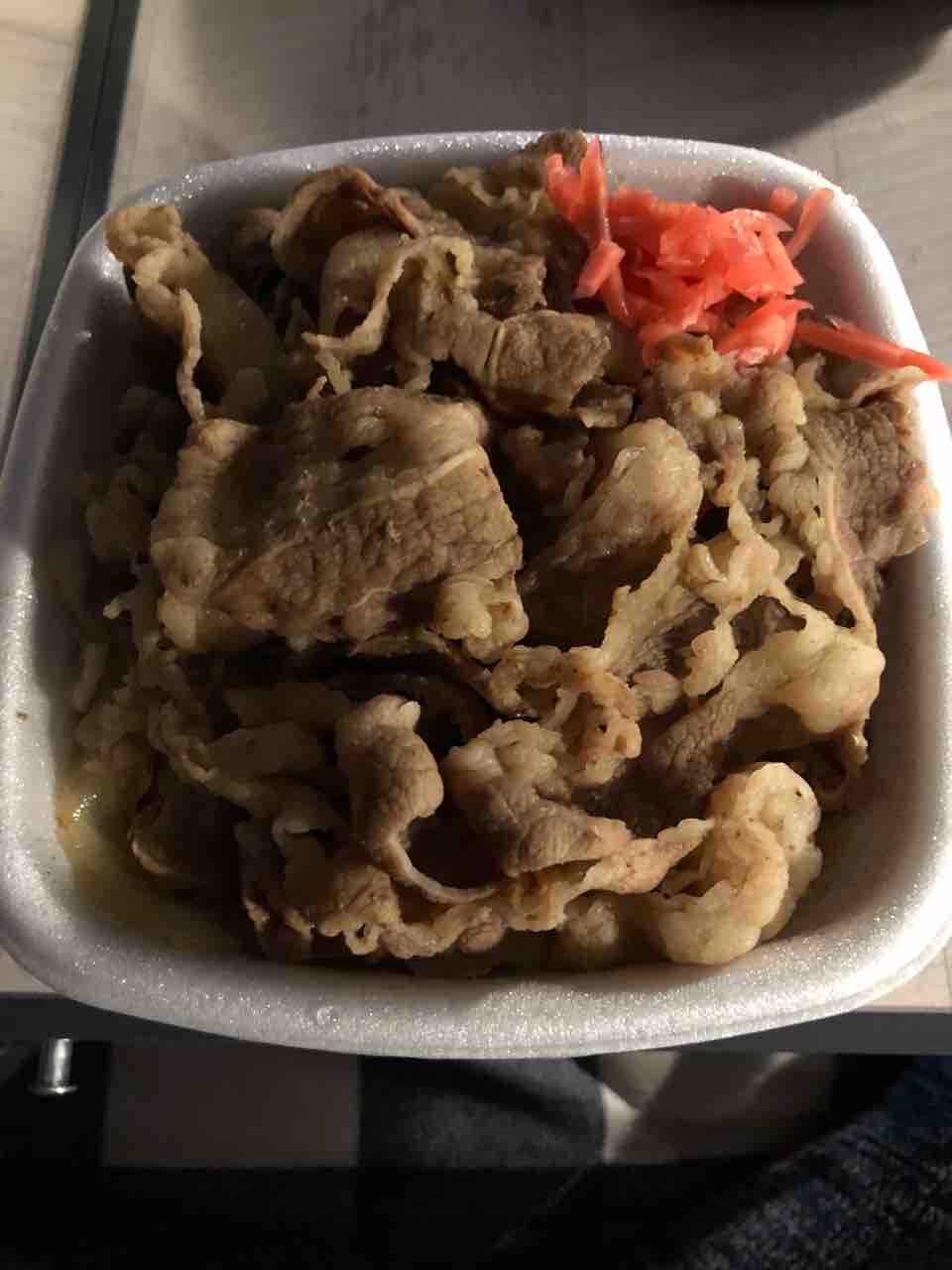 そして、車内で夜飯。私の吉野家牛丼、超特盛(^^)どのくらい入ってるのでしょうか?(^.^)
