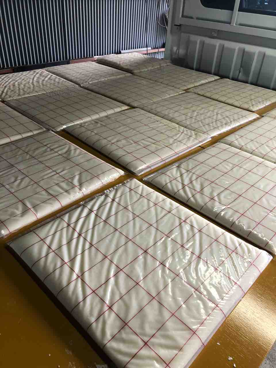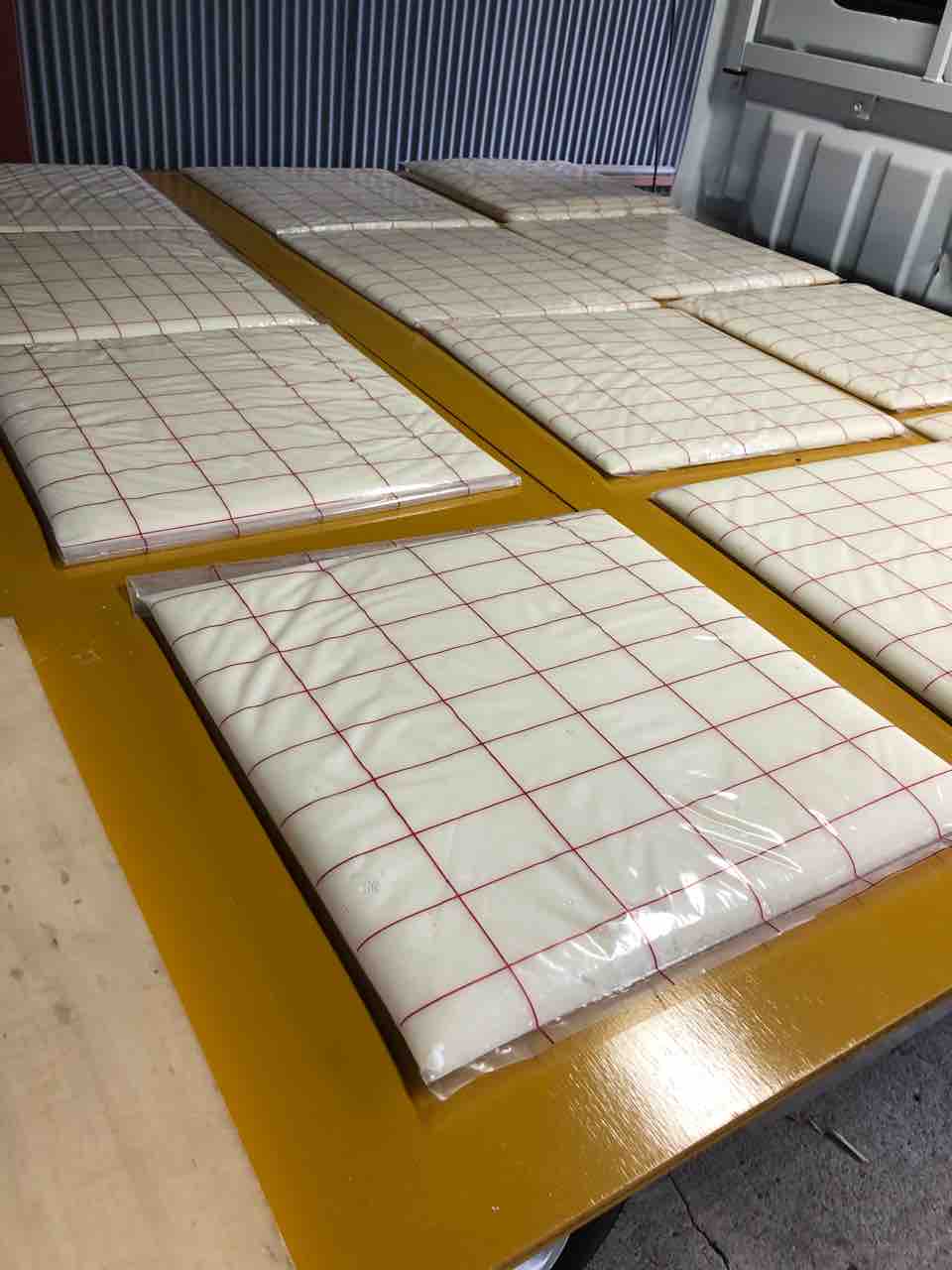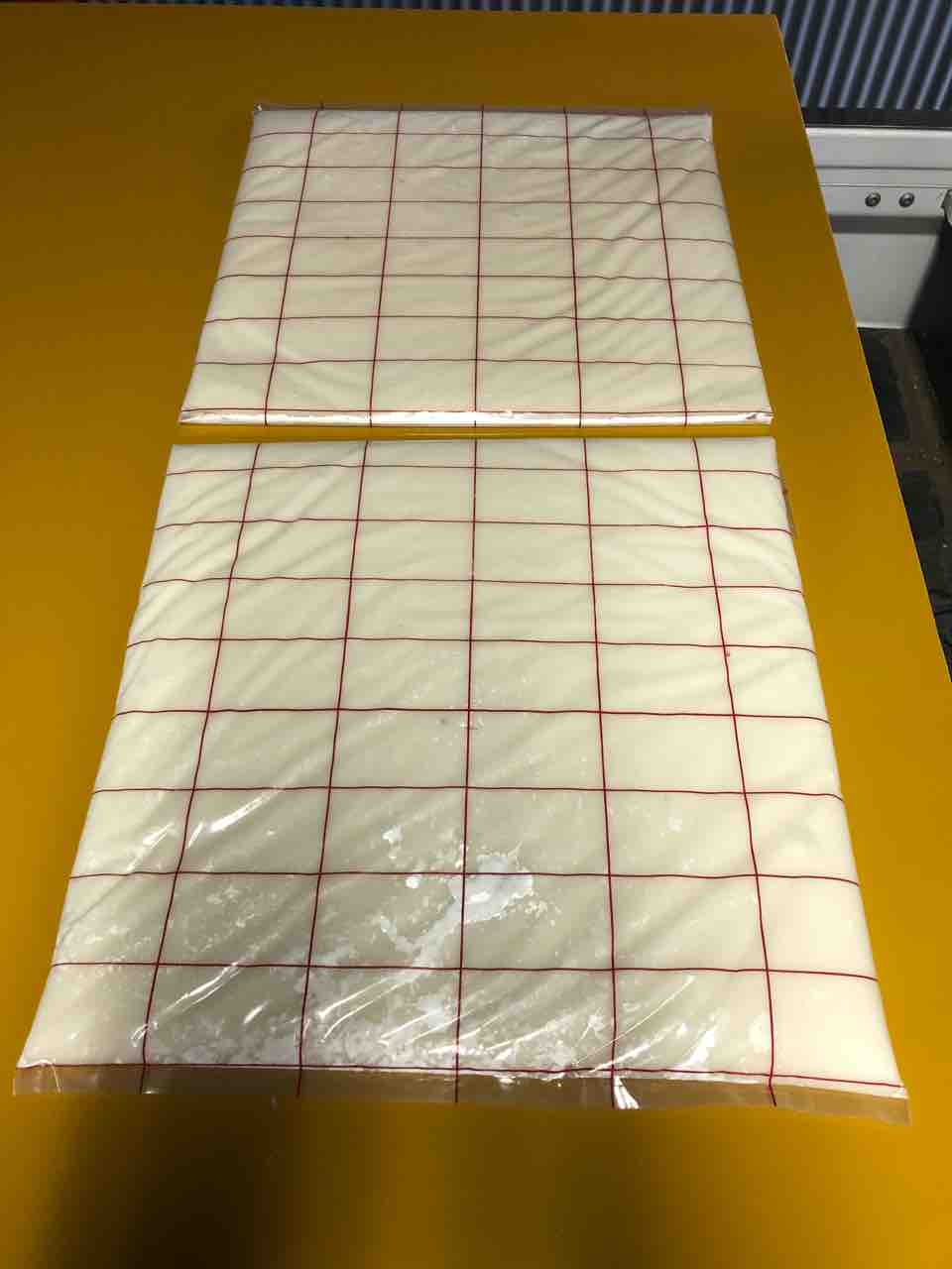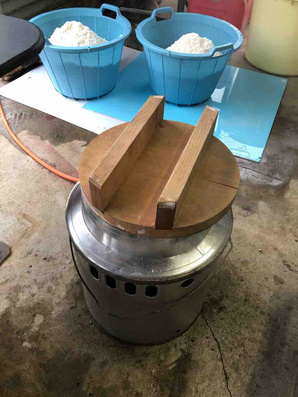 そこに軽トラを入れ、荷台にコンパネを置きます。その上にのした餅を置いていきます。