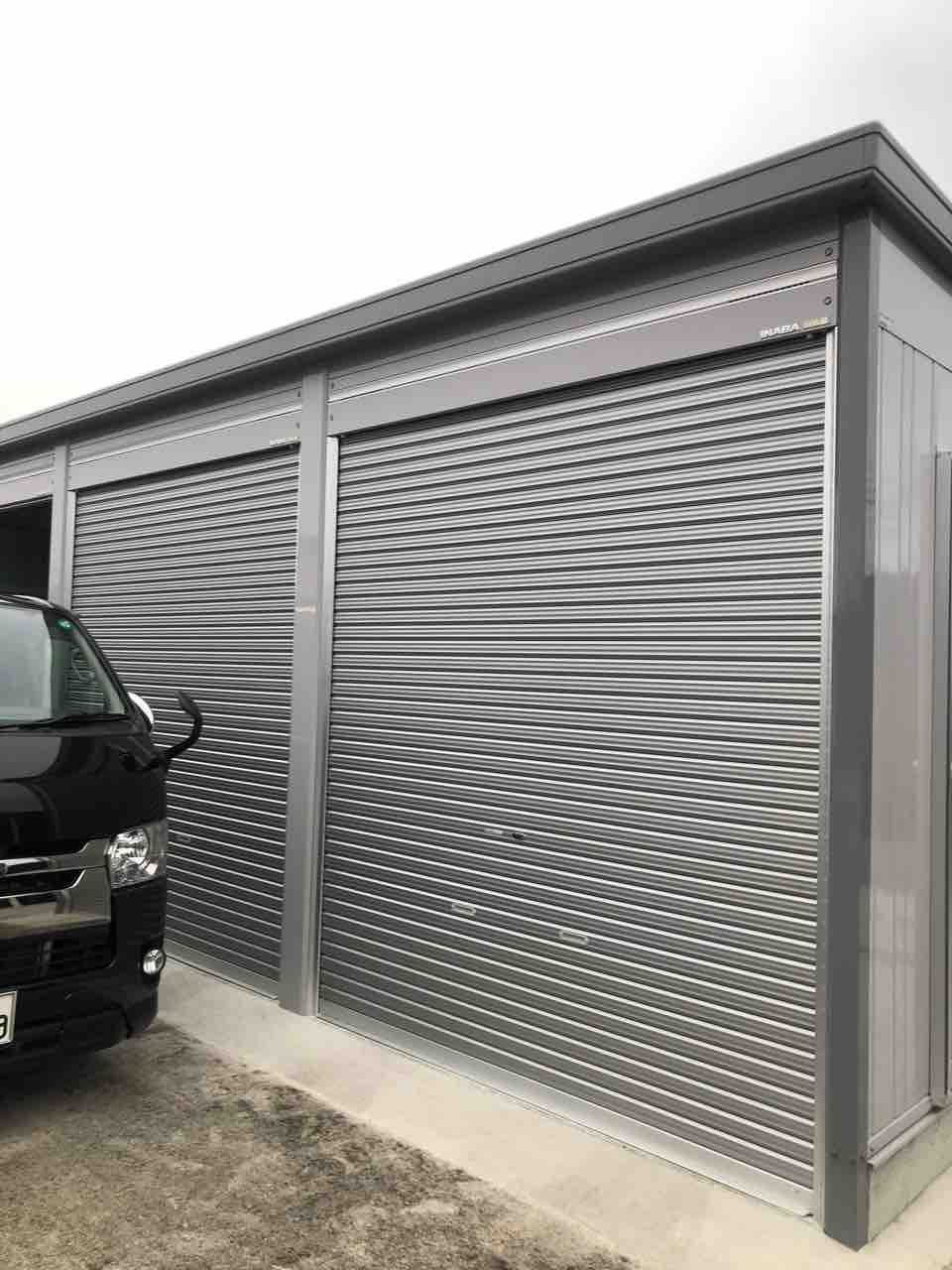 妻の車と軽トラが入ってます。レジアスエースは前からある古い方のガレージ。