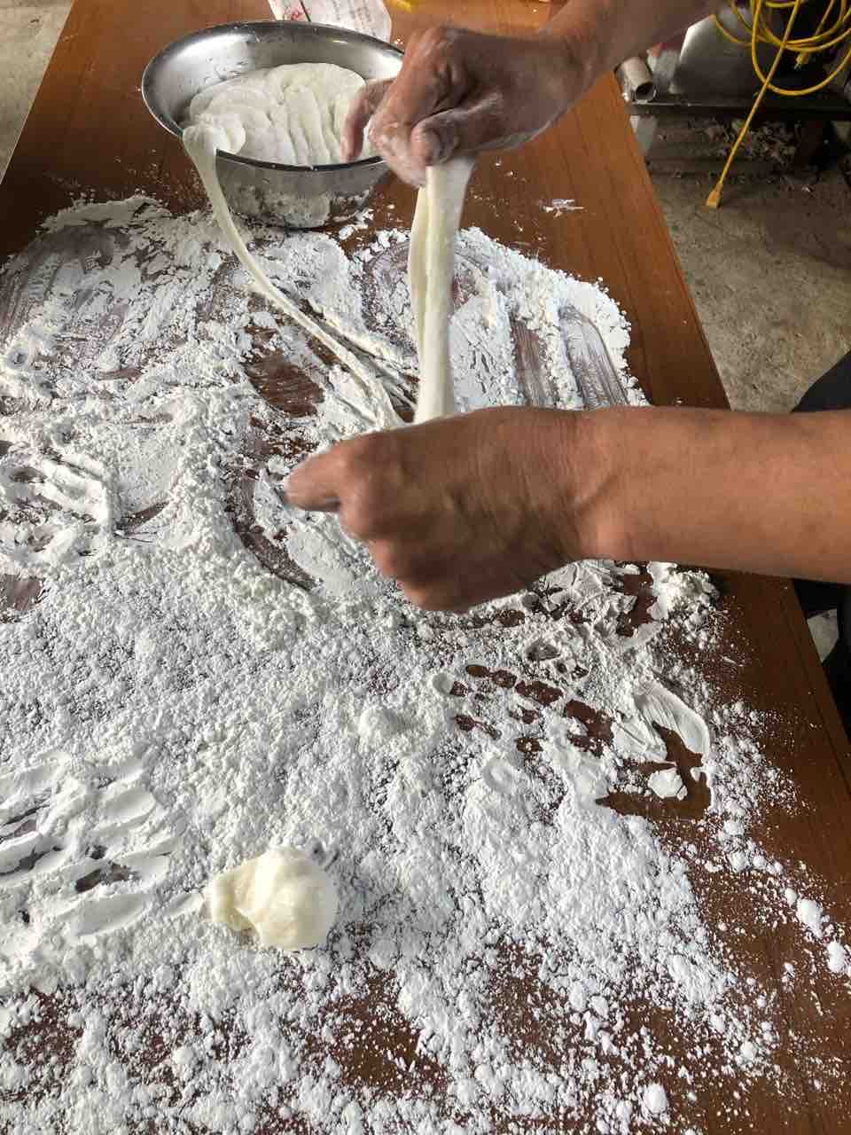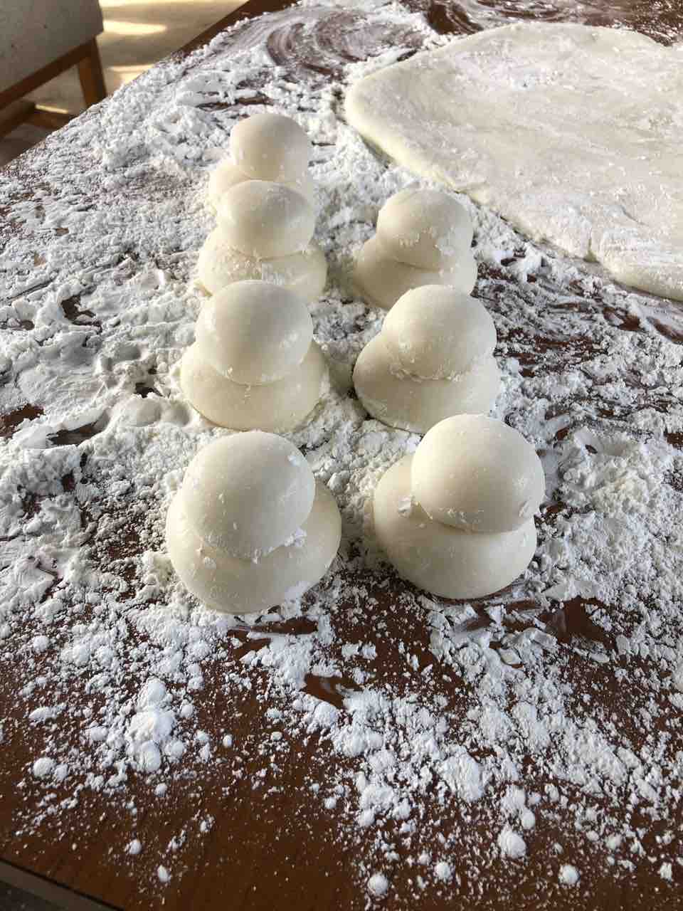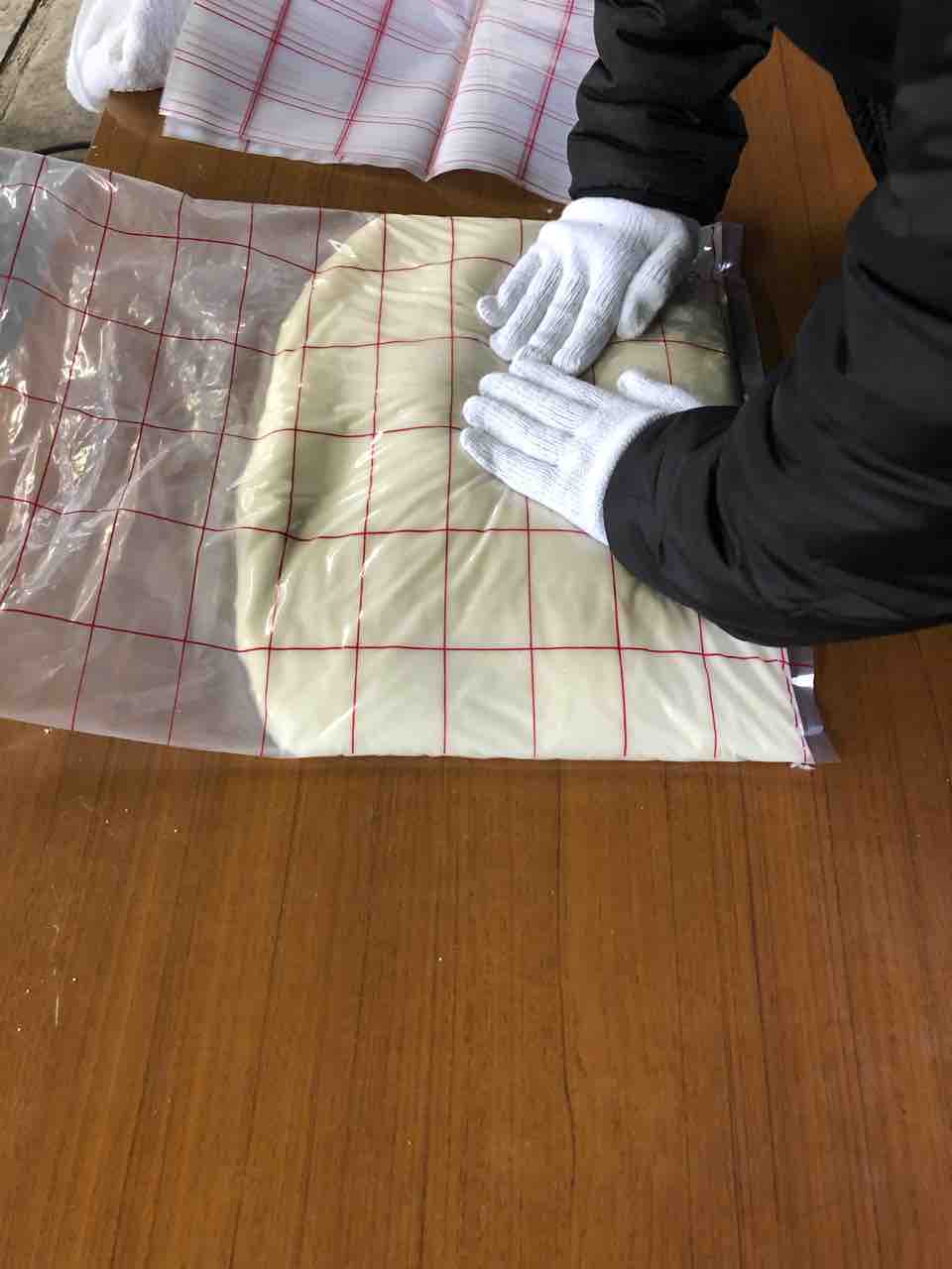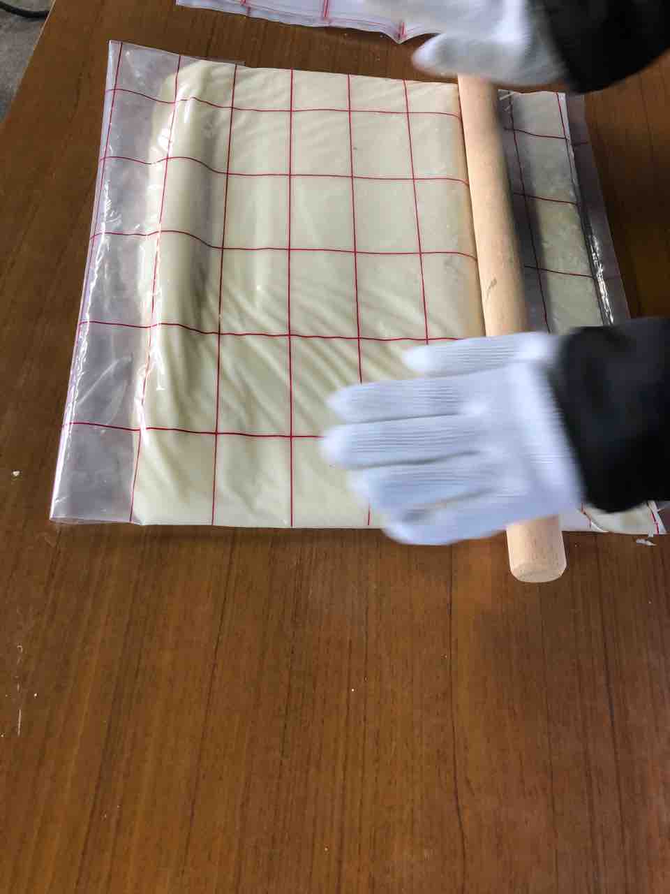 それを袋に詰め、妻がのし棒で、のしていきます。(^。^)