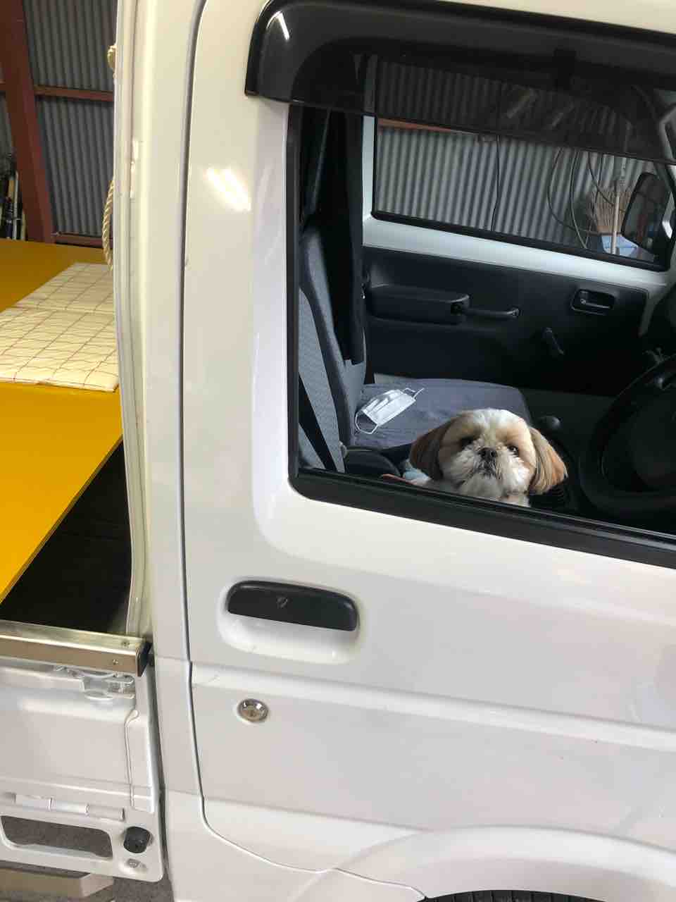 WONDAは軽トラの中で、まったりしてます。