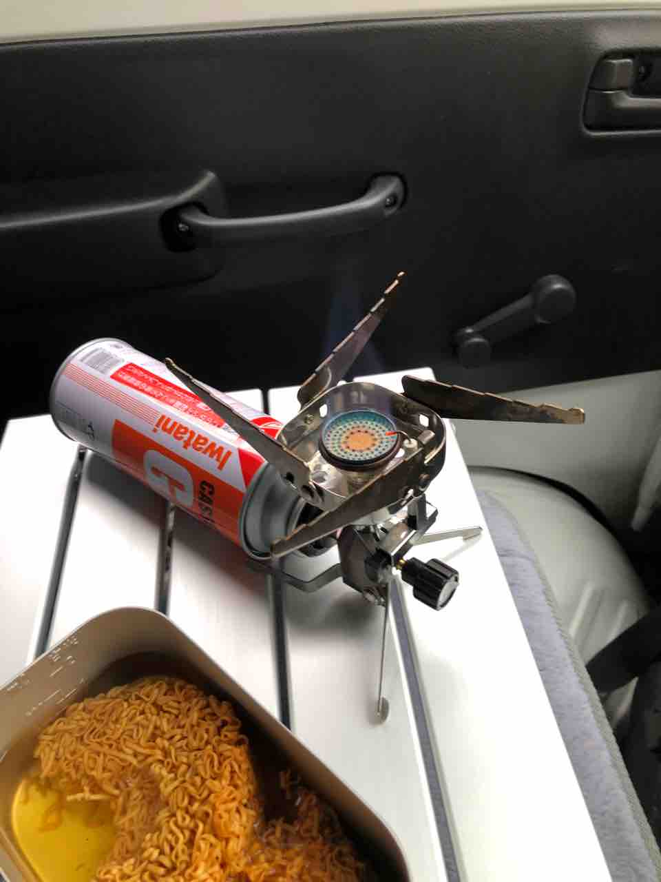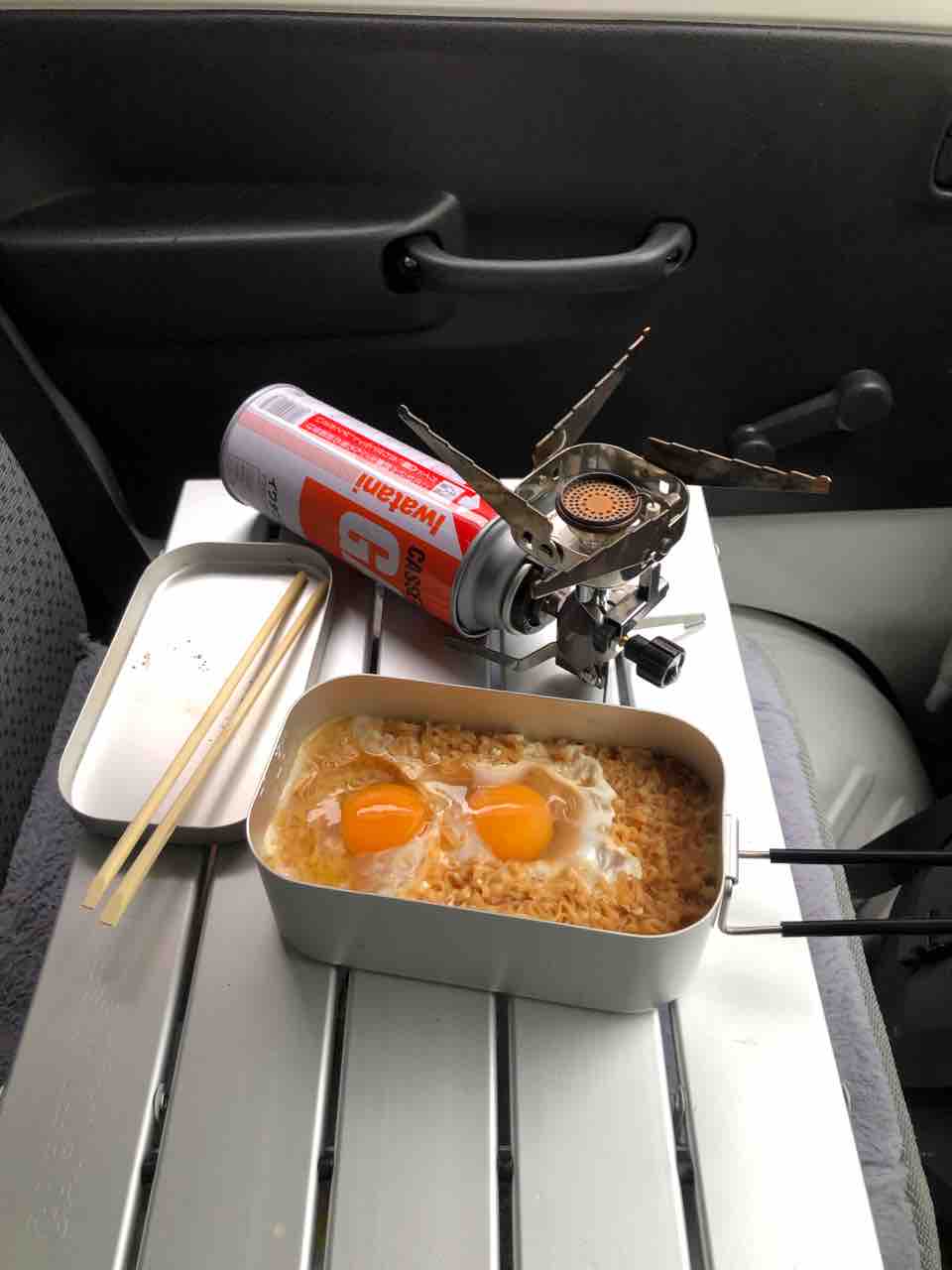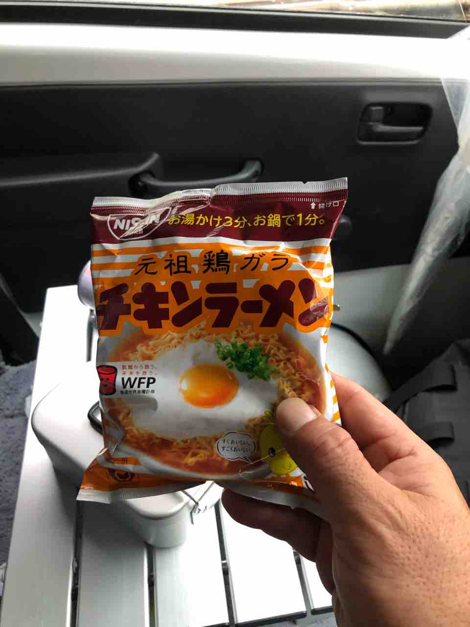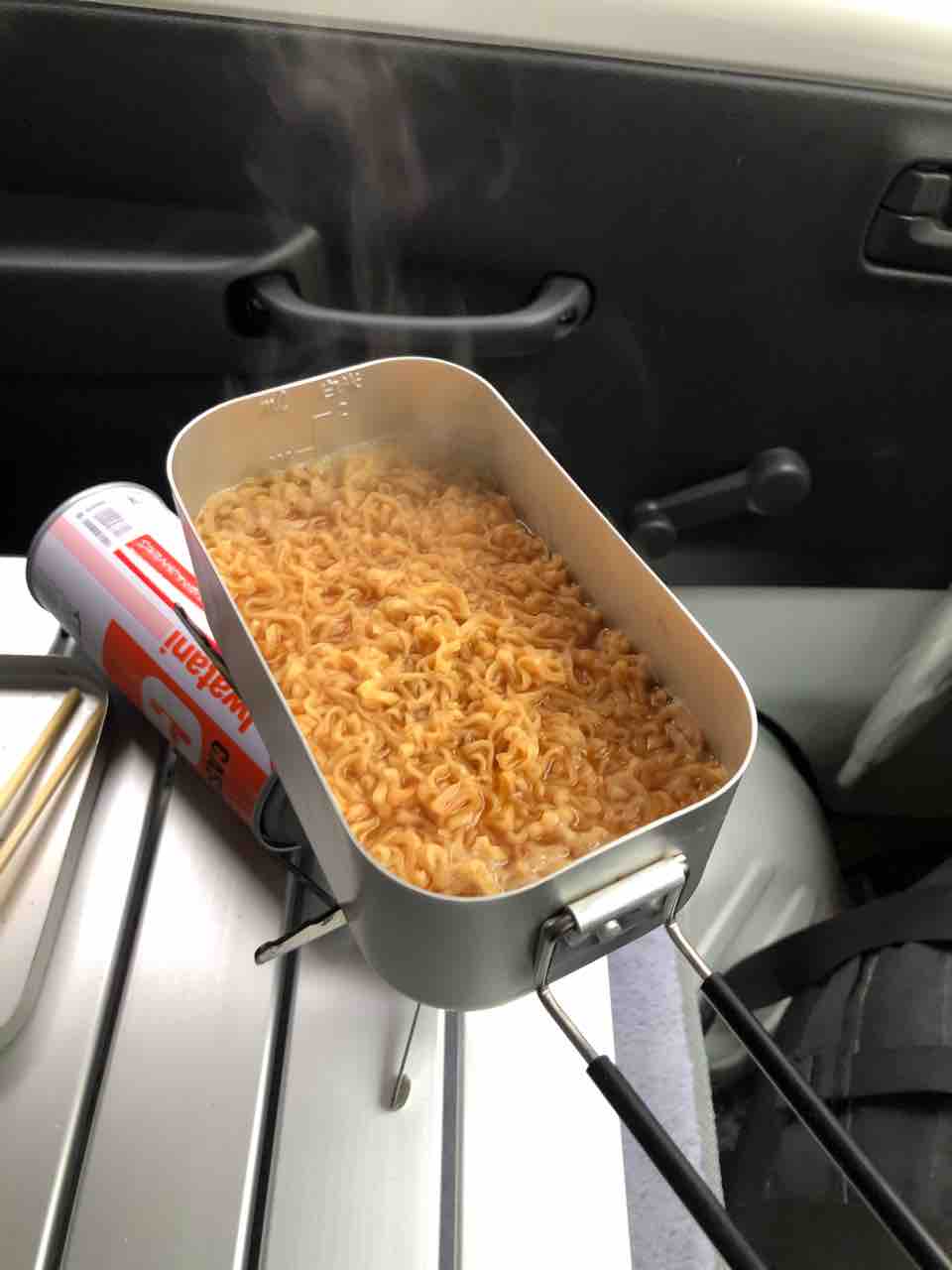 軽トラで車中朝飯!チキンラーメン!