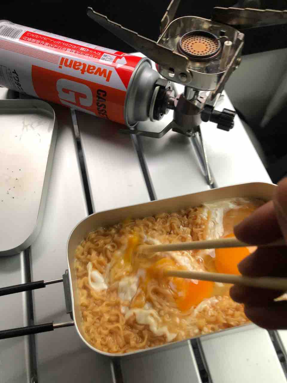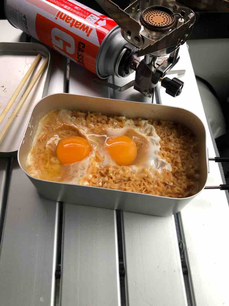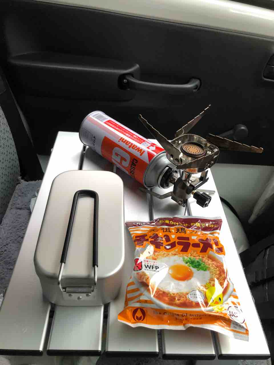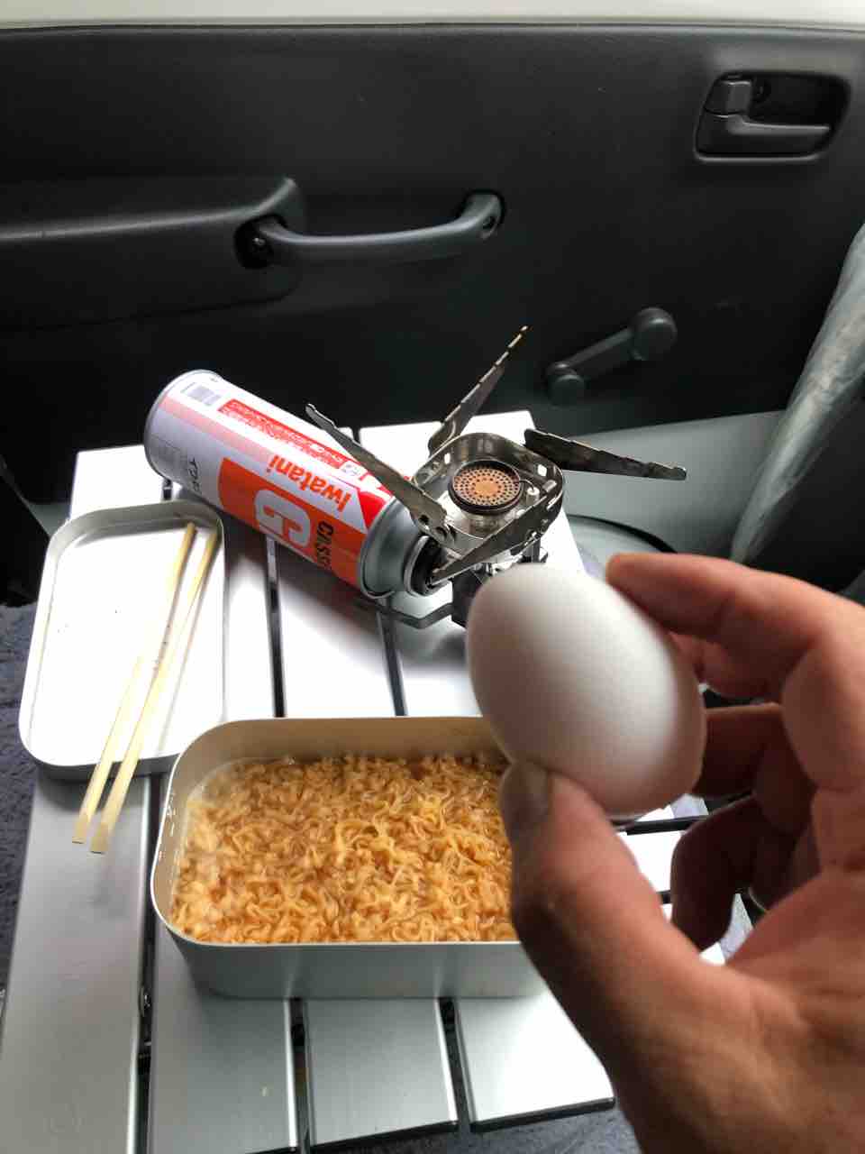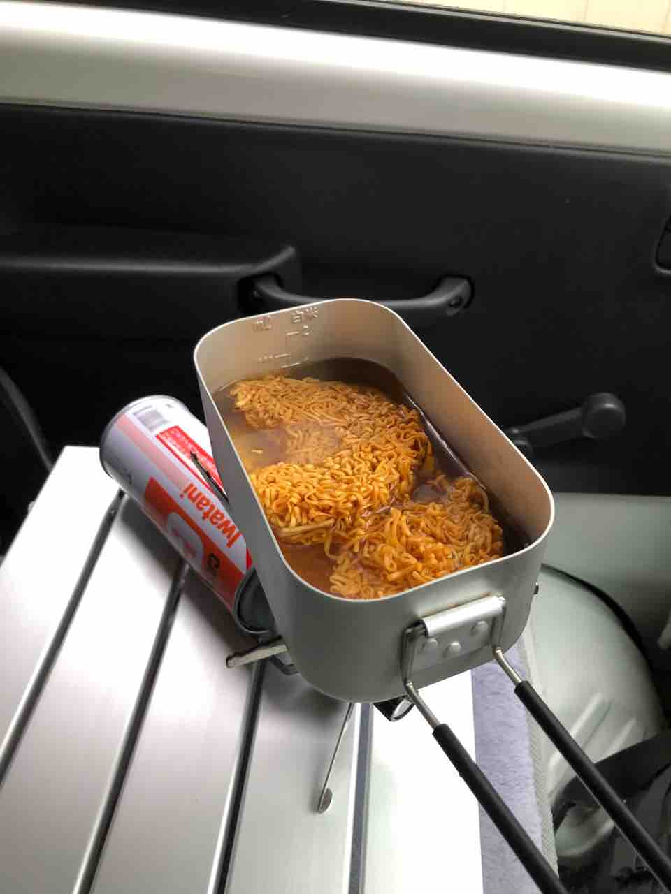 軽トラで車中朝飯!チキンラーメン!