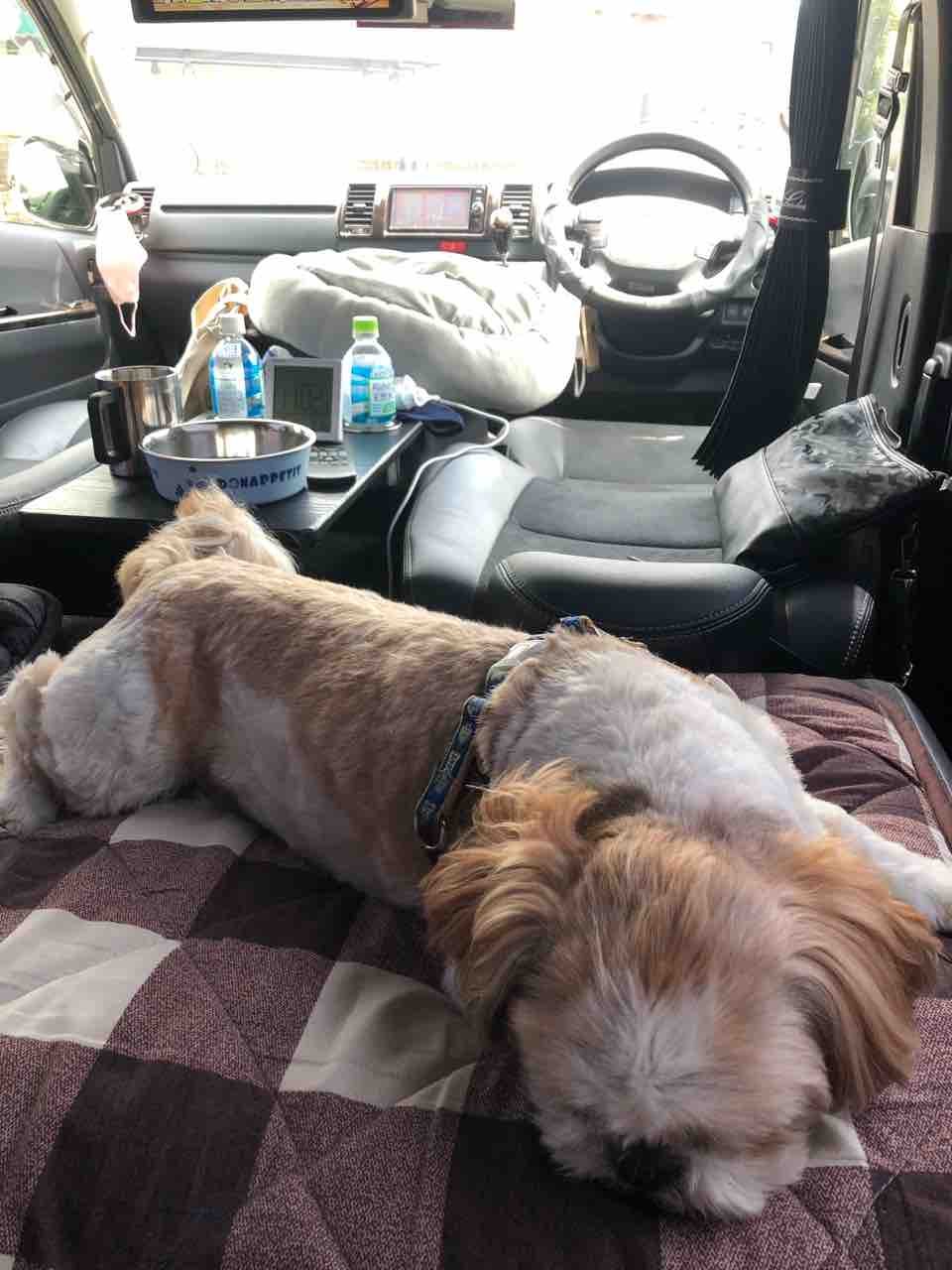 朝散歩したら、WONDAは朝ご飯食べて、またまったり。(^-^)