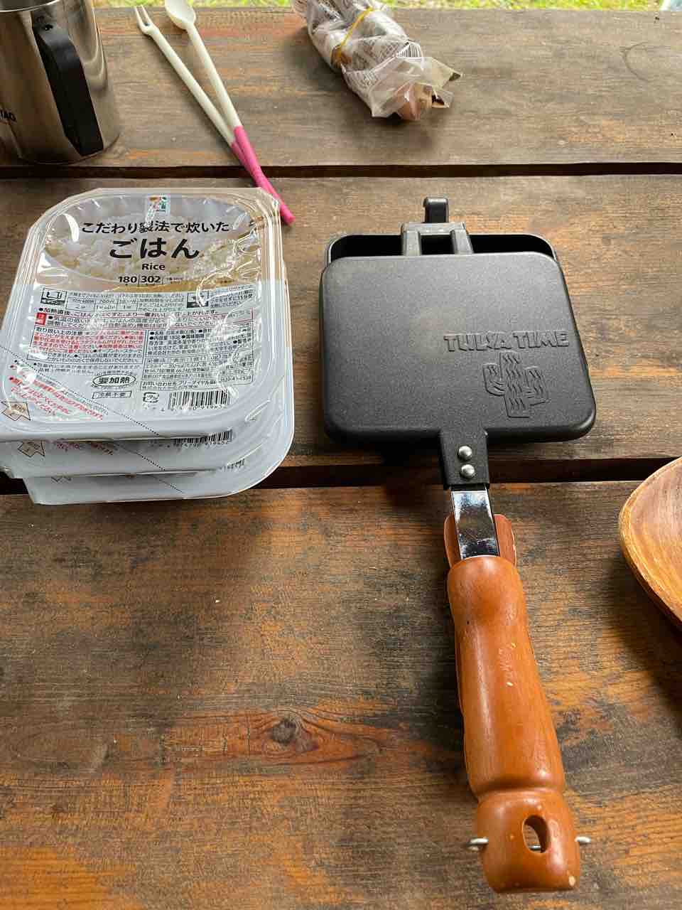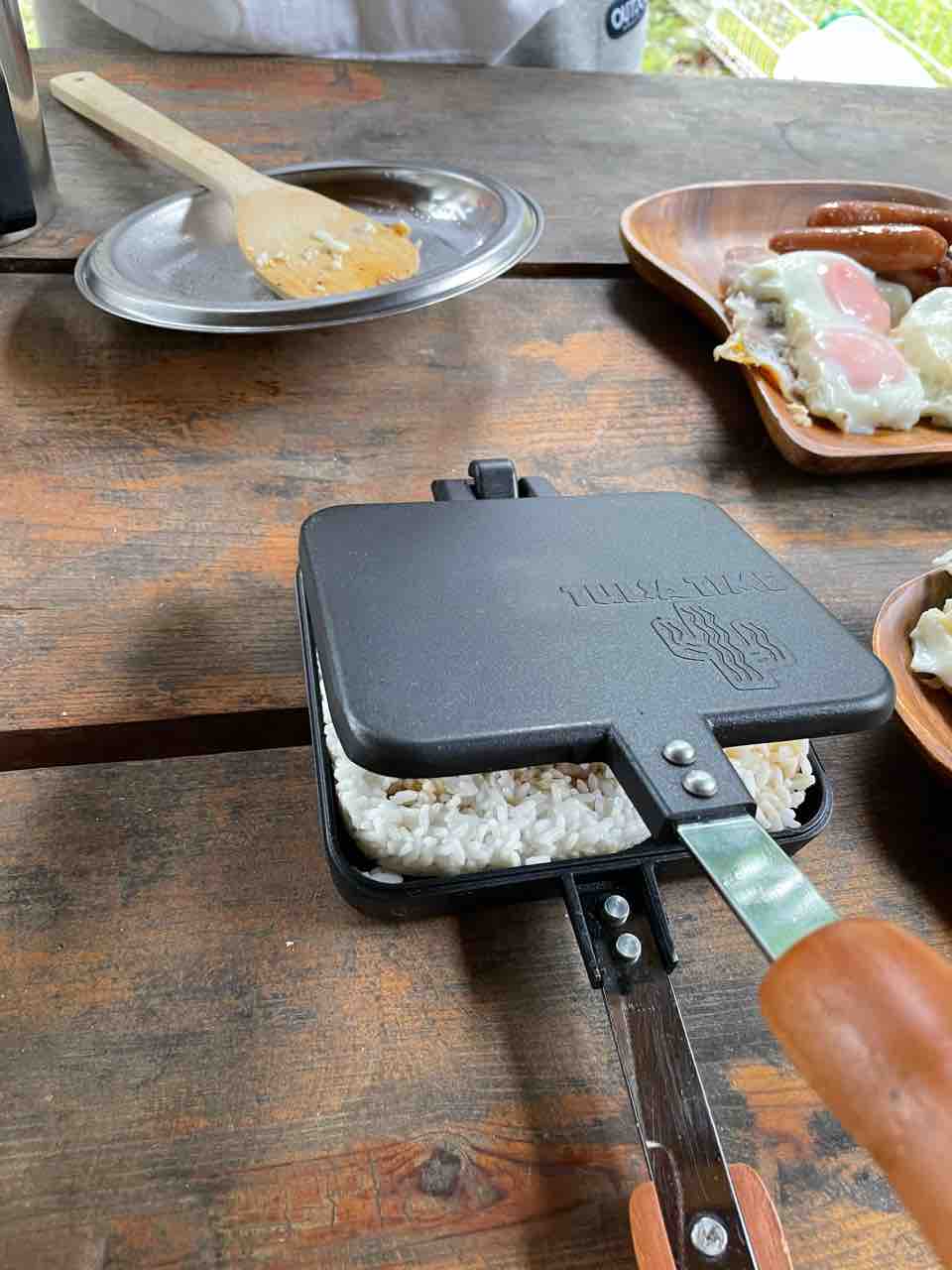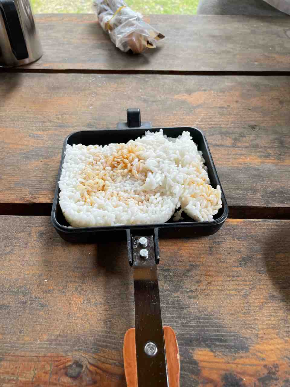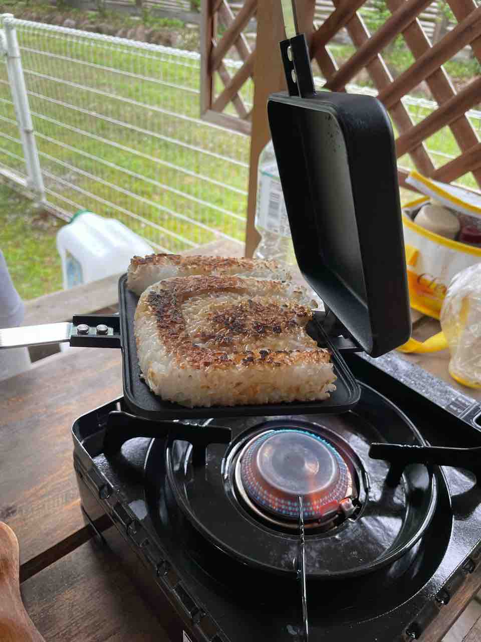 レトルトごはんでホットサンド使って、焼きおにぎり(・・?)焼き飯(・・?)