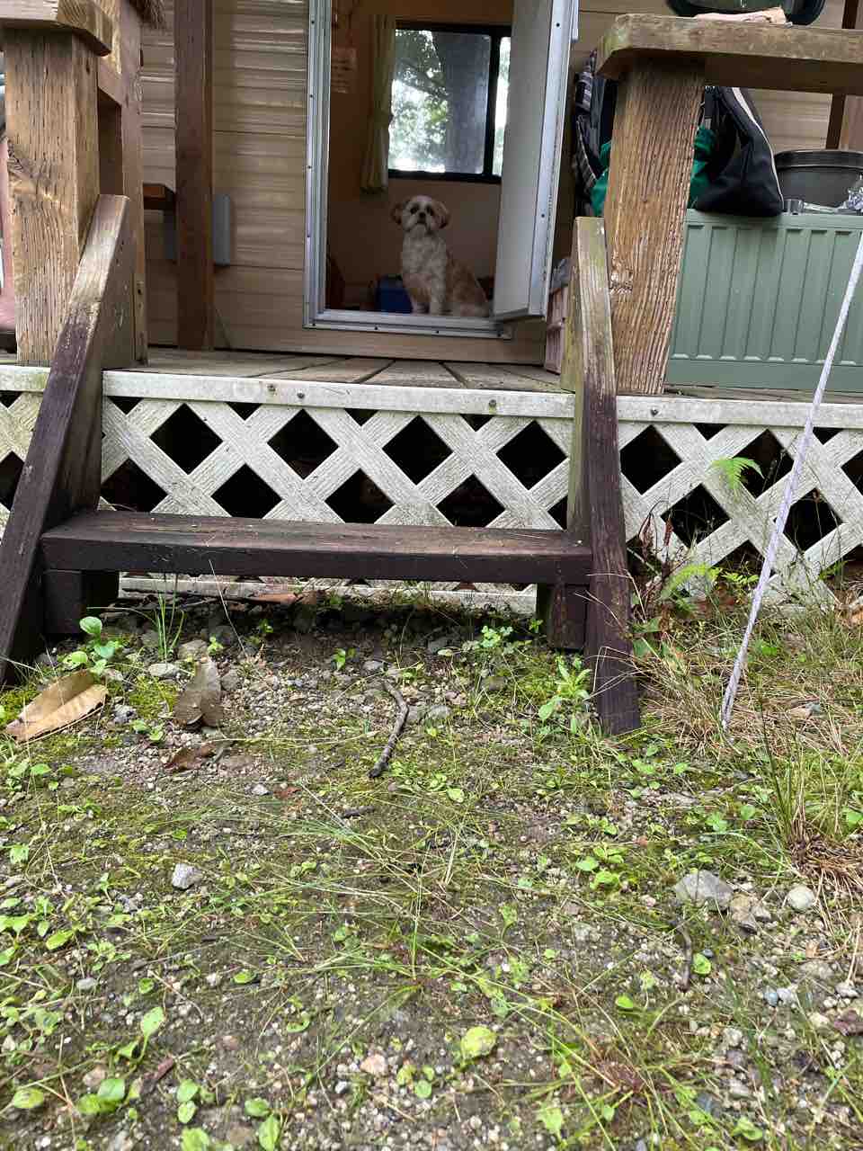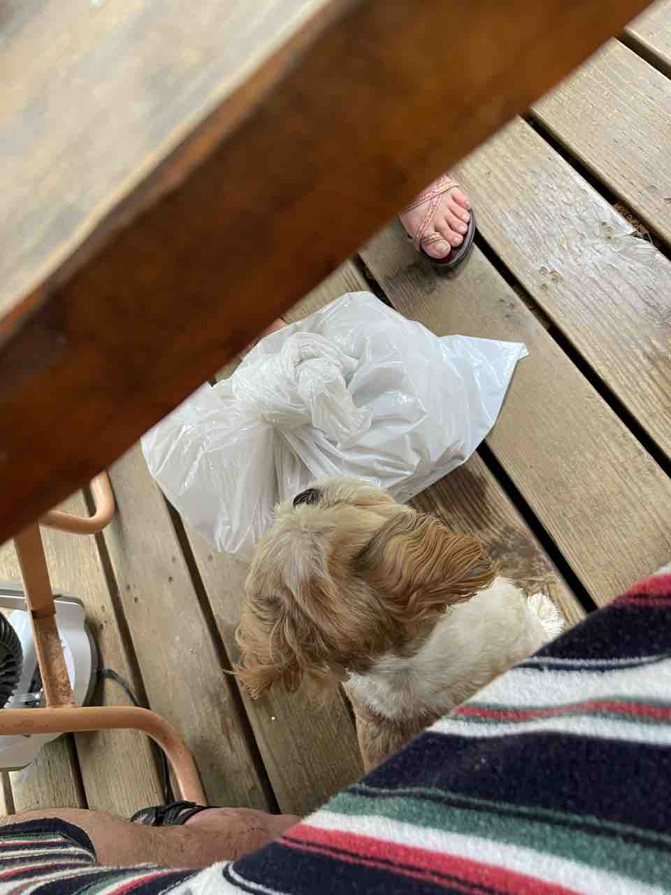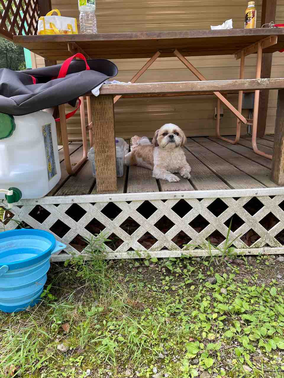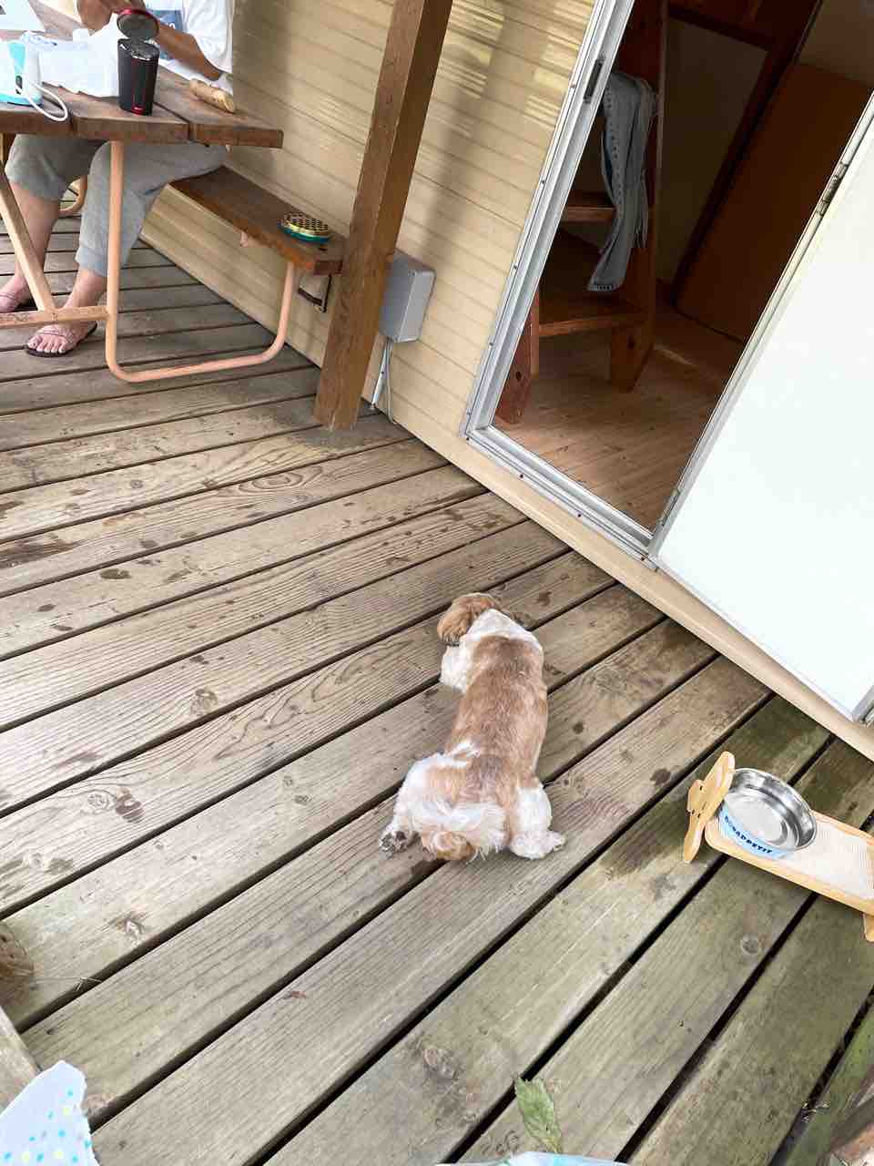 片付け始まると、WONDAはテラスのテーブルの下に。じっと片付けする私を見てます。