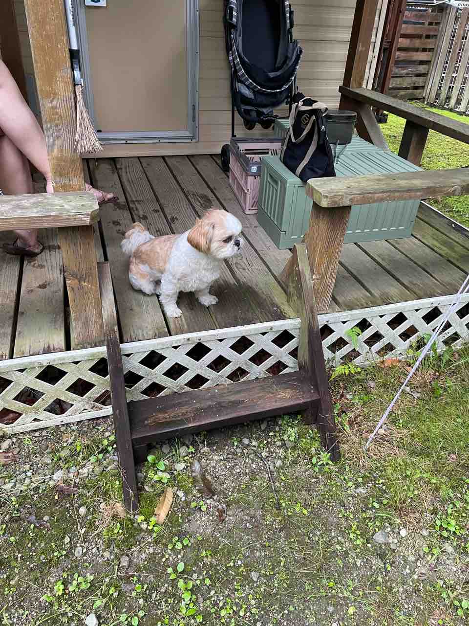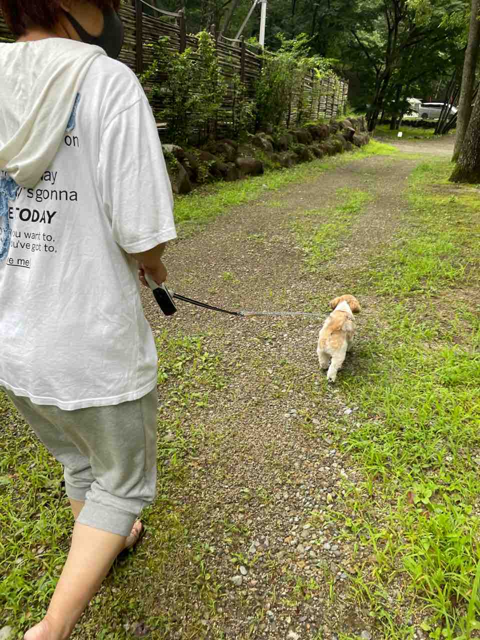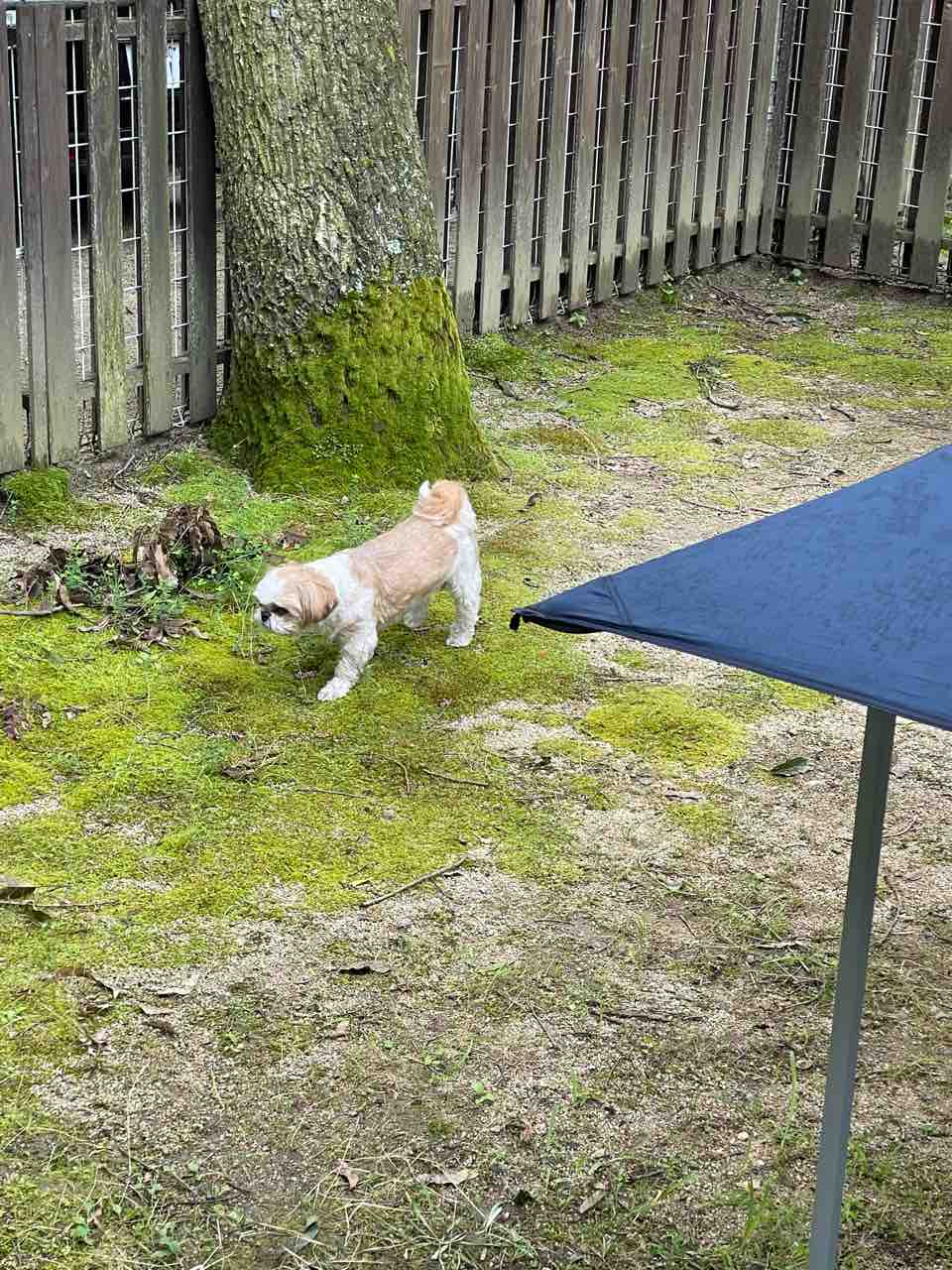 乾かしてる間WONDAがサイト内をウロウロ。散歩行きたそうなので、キャンプ場内をもう1回散歩行きまぁ〜す。(^-^)