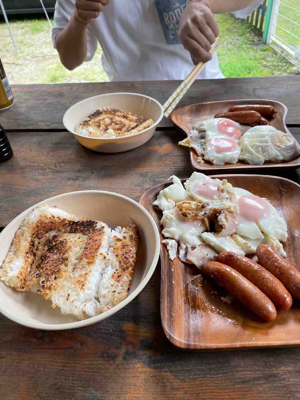サイトに帰ったら、朝飯!